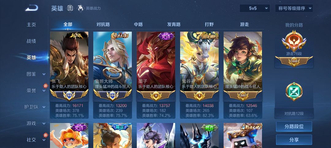 游走76段 国服张飞 国服鲁班大师 省标鬼谷 省标墨子省标桑启