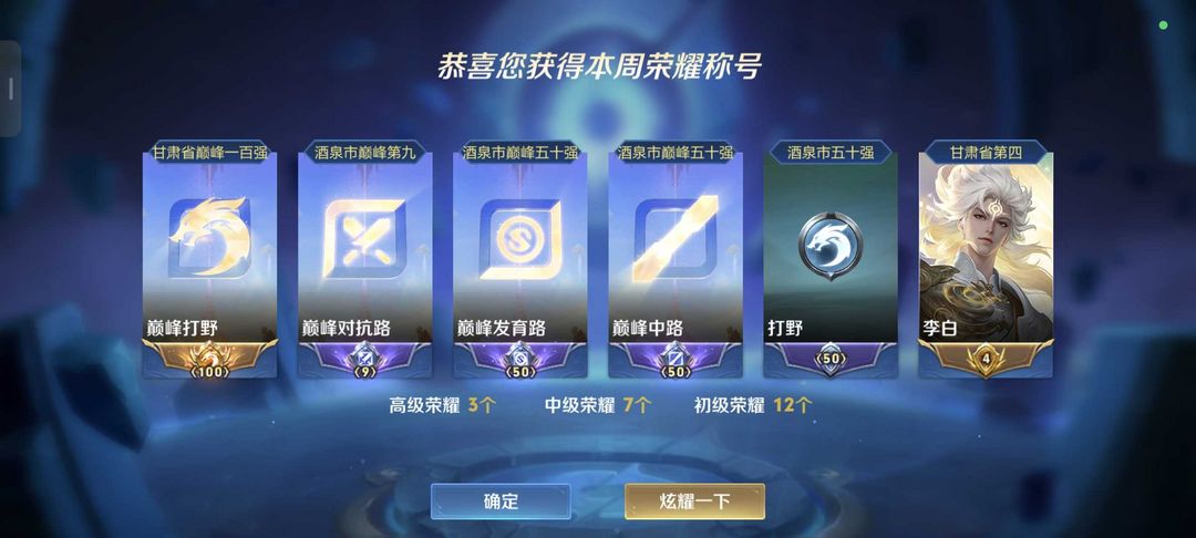 十二月在榜省标李白⭐⭐历史国服李白⭐李白无双典藏皮肤