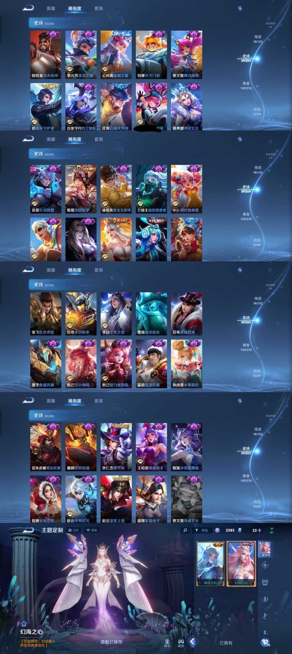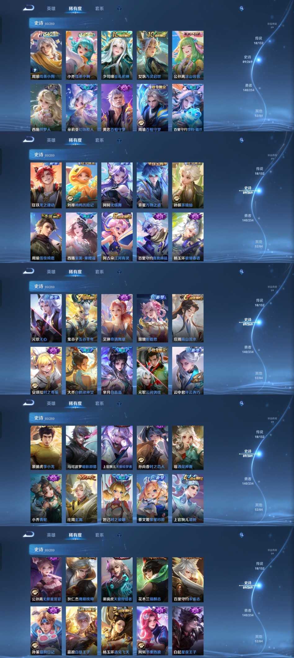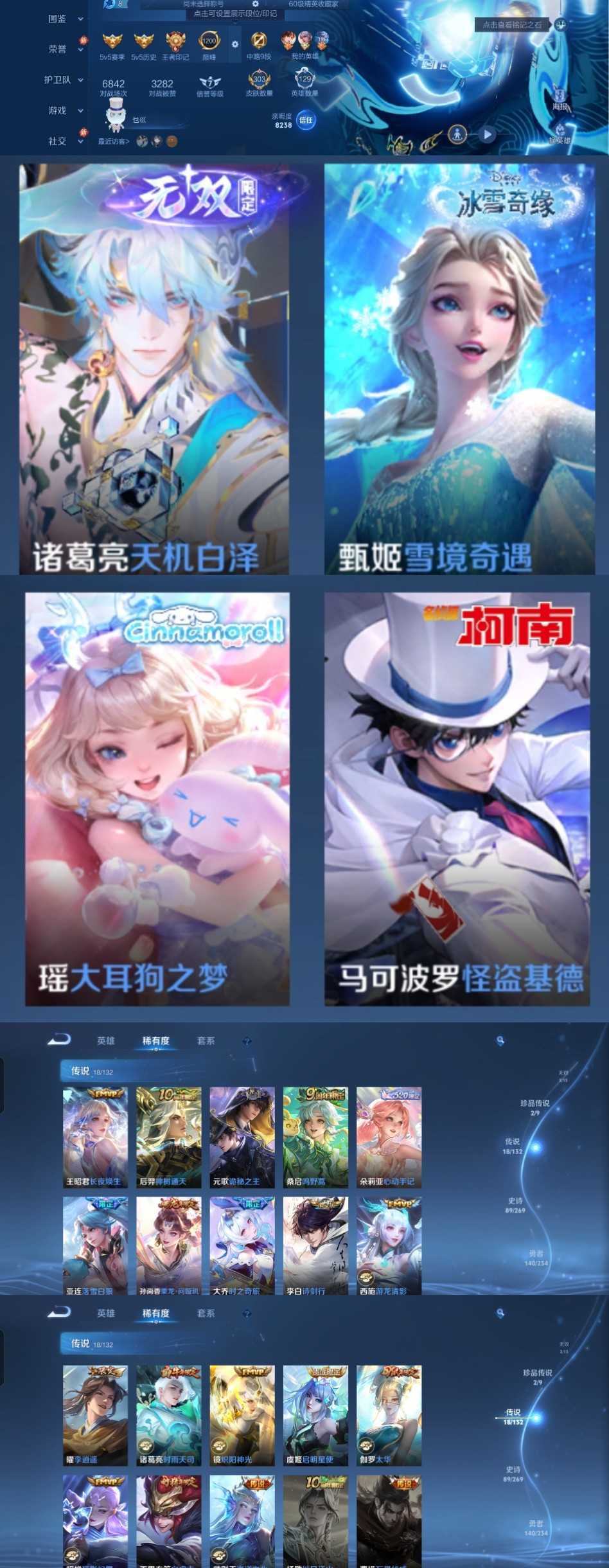 限制: 租号2次及以上 | 撤单率<49%才可租用此帐号装备描述:时间到了还登录白玩或者顶号全部改密拉黑处理永不解除,顶号机器会秒禁玩改密,顶号不仅拉黑还没得玩,赚三两块不容易,请理解谢谢。 ❤❤❤❤❤❤❤❤❤❤❤❤❤❤❤❤❤❤❤ 请勿开挂,挂机,送头,骂人,撤单后游戏等如有违规永久拉黑永不解除。 重置二级密码不要费劲了,号主每天都会上号查看,多行不义必自毙,人在做天在看,多做好事多自律,少做缺德事。 该号英雄129个皮肤310个,典藏1个,无双3个,珍品传说2个,星传说1个,传说22个,史诗89个,祝您游戏愉快~