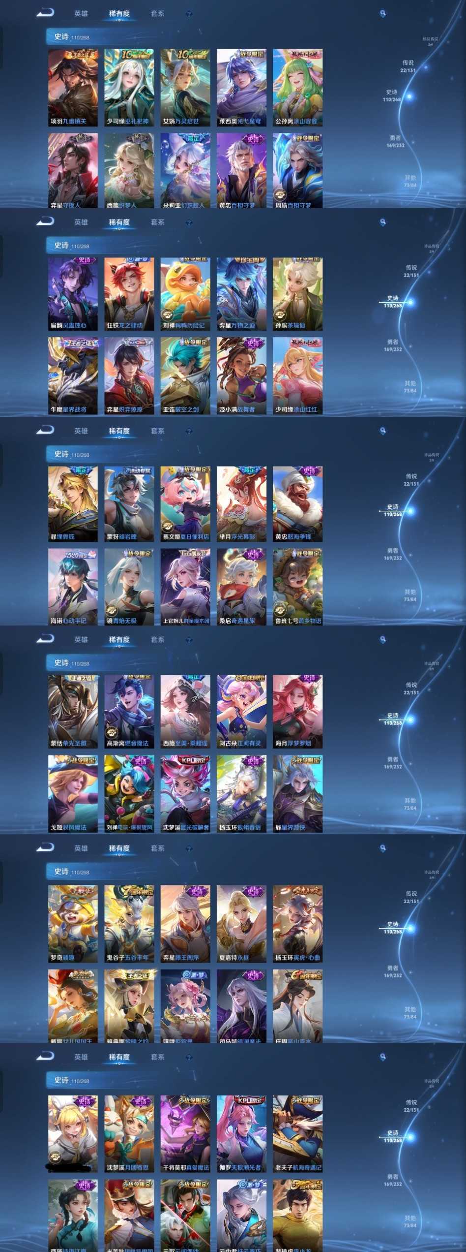 限制: 租号2次及以上 | 撤单率<49%才可租用此帐号装备描述:时间到了还登录白玩或者顶号全部改密拉黑处理永不解除,顶号机器会秒禁玩改密,顶号不仅拉黑还没得玩,赚三两块不容易,请理解谢谢。 ❤❤❤❤❤❤❤❤❤❤❤❤❤❤❤❤❤❤❤ 请勿开挂,挂机,送头,骂人,撤单后游戏等如有违规永久拉黑永不解除。 重置二级密码不要费劲了,号主每天都会上号查看,多行不义必自毙,人在做天在看,多做好事多自律,少做缺德事。 该号英雄129个皮肤381个,典藏2个,无双3个,珍品传说2个,星传说2个,传说22个,史诗110个,祝您游戏愉快~