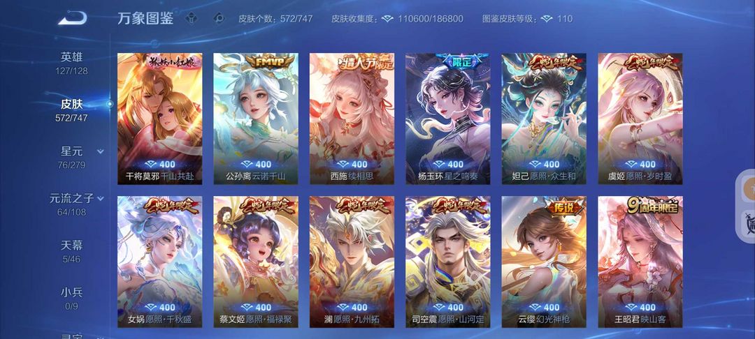 572皮肤❤️貂蝉慕夏❤️新珍品宫本暃❤️86传说皮❤️满蛇年❤️千山共赴❤️