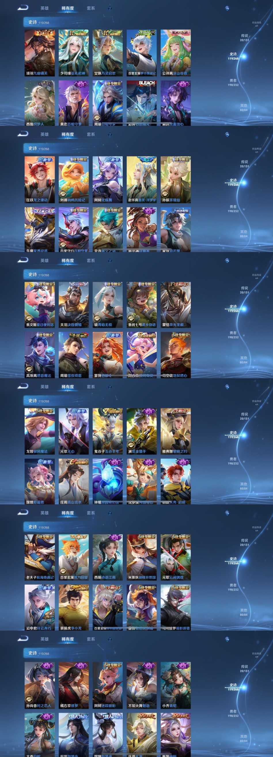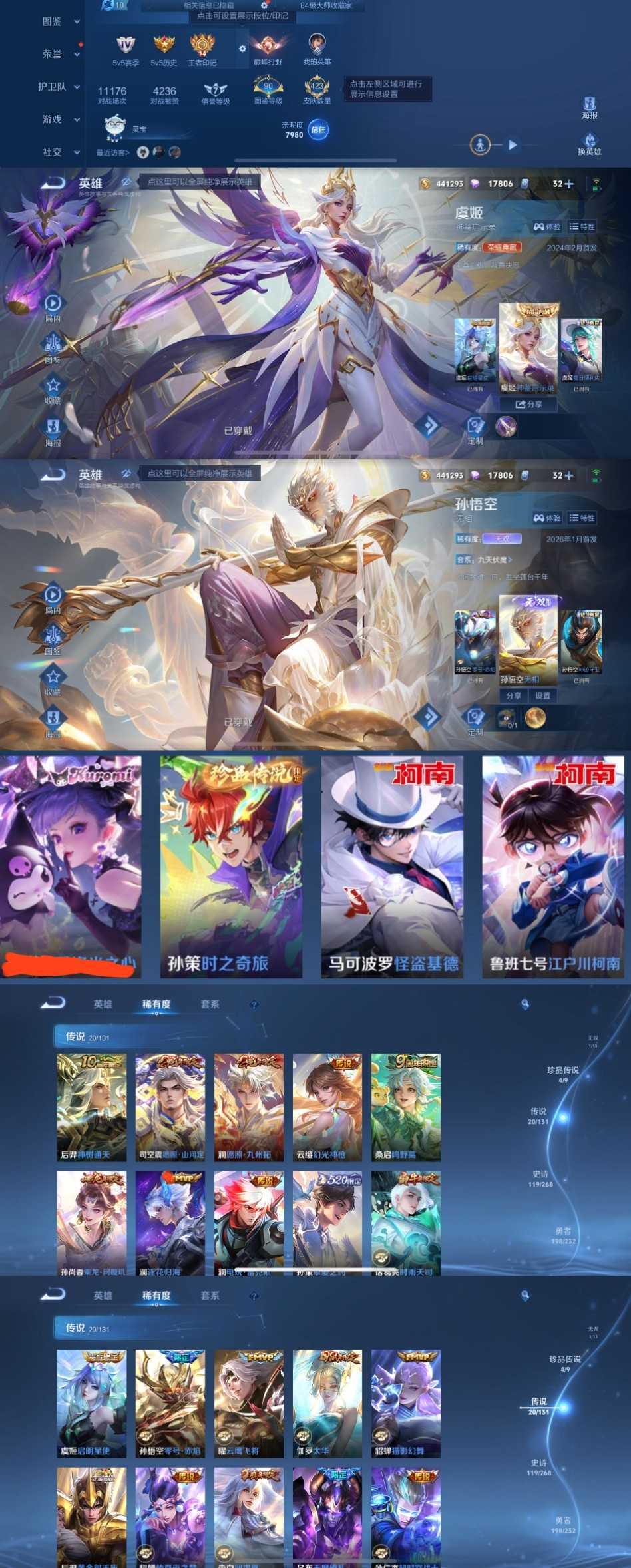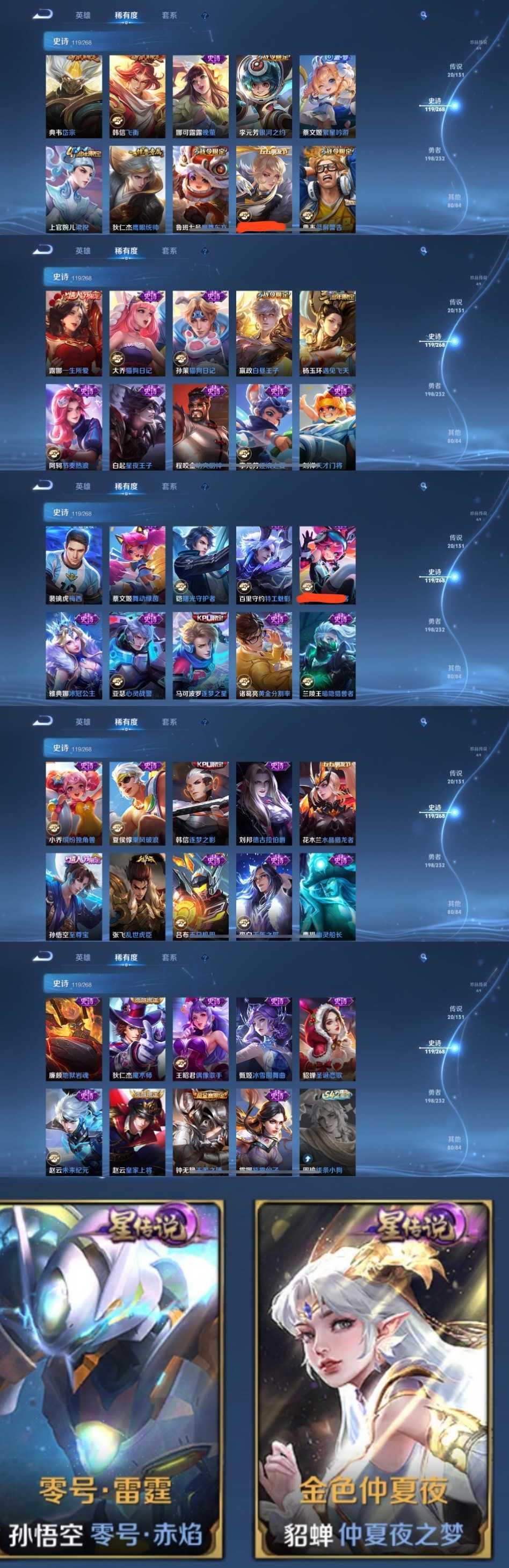 限制: 撤单率<49%才可租用此帐号装备描述:时间到了还登录白玩或者顶号全部改密拉黑处理永不解除,顶号机器会秒禁玩改密,顶号不仅拉黑还没得玩,赚三两块不容易,请理解谢谢。 ❤❤❤❤❤❤❤❤❤❤❤❤❤❤❤❤❤❤❤ 请勿开挂,挂机,送头,骂人,撤单后游戏等如有违规永久拉黑永不解除。 重置二级密码不要费劲了,号主每天都会上号查看,多行不义必自毙,人在做天在看,多做好事多自律,少做缺德事。 该号英雄128个皮肤423个,典藏1个,无双1个,珍品传说4个,星传说2个,传说20个,史诗119个,祝您游戏愉快~
