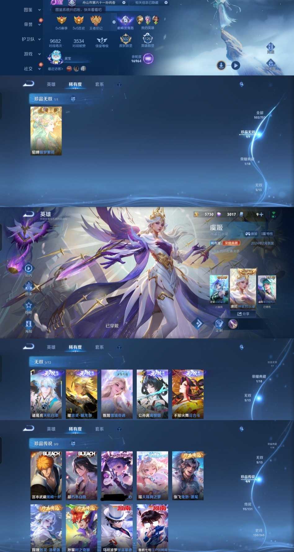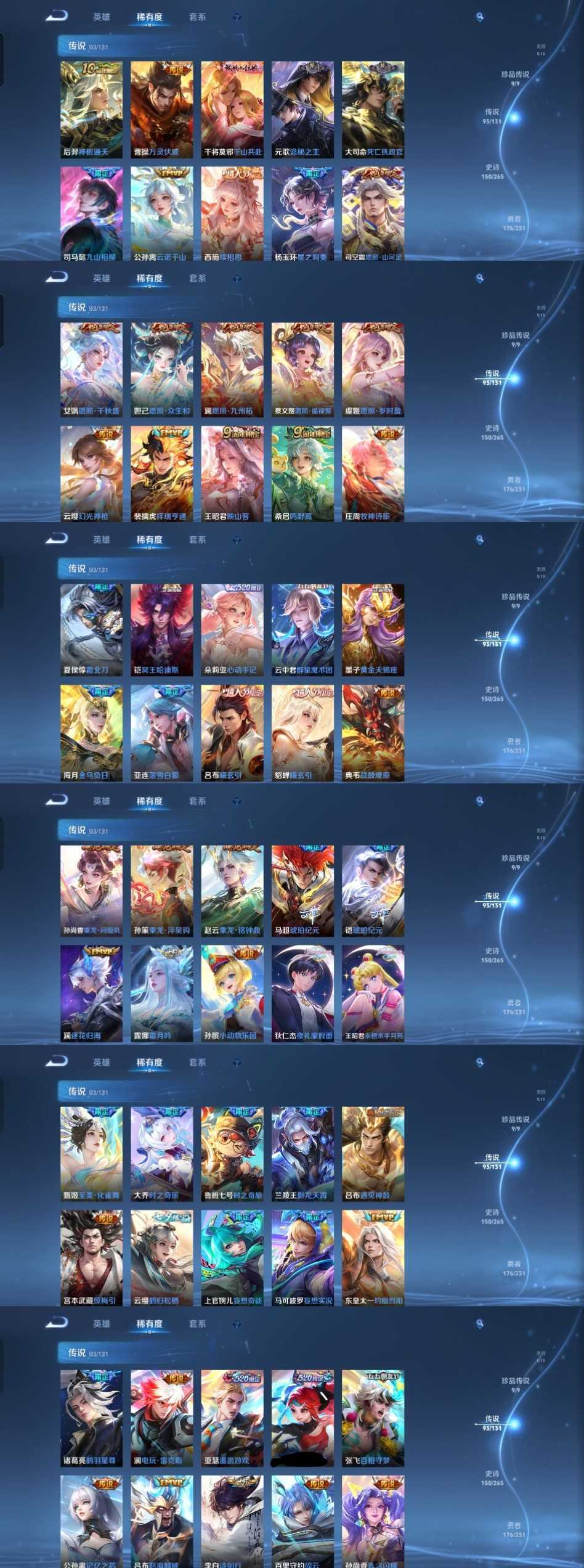 限制: 租号1次及以上 | 撤单率<49%才可租用此帐号装备描述:时间到了还登录白玩或者顶号全部改密拉黑处理永不解除,顶号机器会秒禁玩改密,顶号不仅拉黑还没得玩,赚三两块不容易,请理解谢谢。 ❤❤❤❤❤❤❤❤❤❤❤❤❤❤❤❤❤❤❤ 请勿开挂,挂机,送头,骂人,撤单后游戏等如有违规永久拉黑永不解除。 重置二级密码不要费劲了,号主每天都会上号查看,多行不义必自毙,人在做天在看,多做好事多自律,少做缺德事。 该号英雄126个皮肤502个,珍品无双1个,典藏1个,无双5个,珍品传说9个,星传说7个,传说93个,史诗150个,祝您游戏愉快~