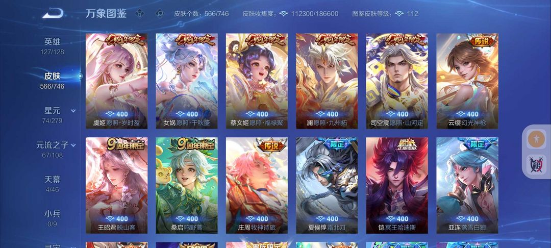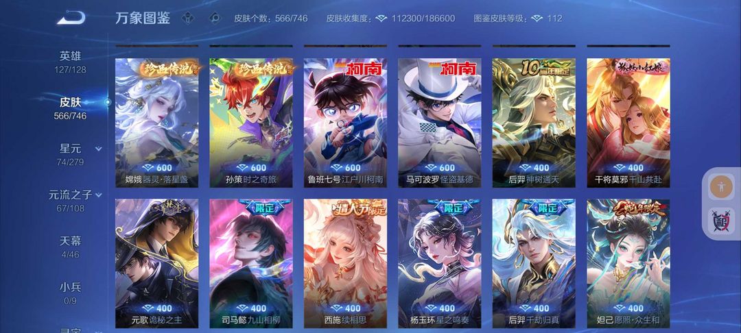 无双V10号566皮肤6水晶5无双75传说❤️诡秘之主❤️离烟恨花合斗❤️怪盗基德❤️满蛇年❤️九山