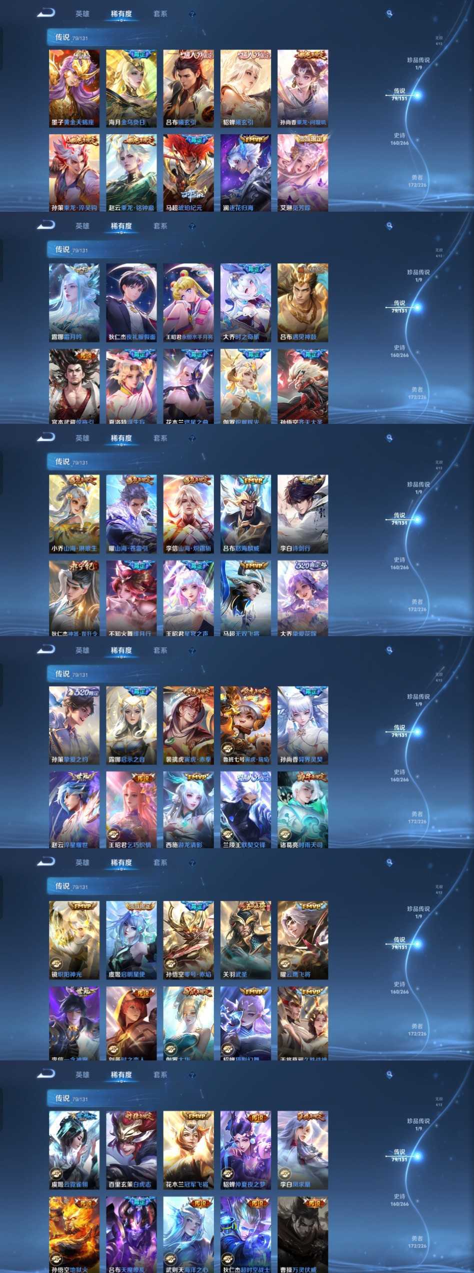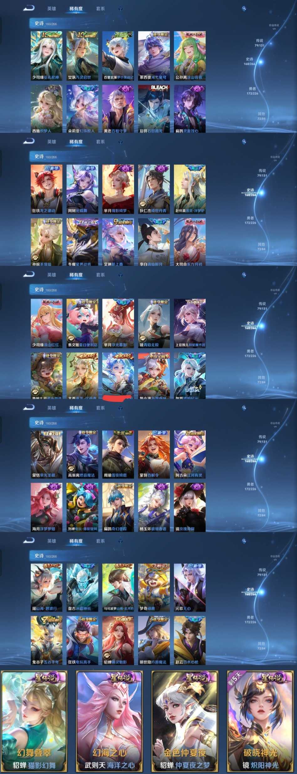 限制: 租号2次及以上 | 撤单率<49%才可租用此帐号装备描述:时间到了还登录白玩或者顶号全部改密拉黑处理永不解除,顶号机器会秒禁玩改密,顶号不仅拉黑还没得玩,赚三两块不容易,请理解谢谢。 ❤❤❤❤❤❤❤❤❤❤❤❤❤❤❤❤❤❤❤ 请勿开挂,挂机,送头,骂人,撤单后游戏等如有违规永久拉黑永不解除。 重置二级密码不要费劲了,号主每天都会上号查看,多行不义必自毙,人在做天在看,多做好事多自律,少做缺德事。 该号英雄127个皮肤492个,典藏4个,无双4个,珍品传说1个,星传说4个,传说79个,史诗160个,祝您游戏愉快~