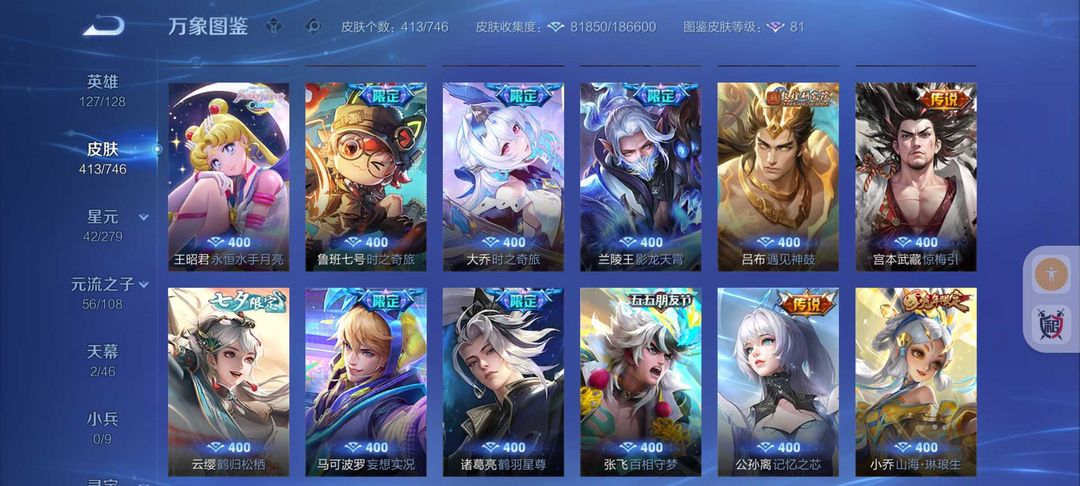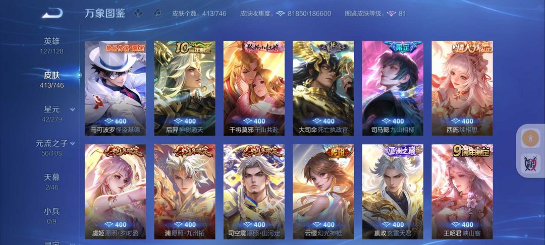 装备描述:超新皮肤7无双❤️凯神罪❤️天机白泽❤️怪盗基德❤️68传说❤️诡秘之主❤️
