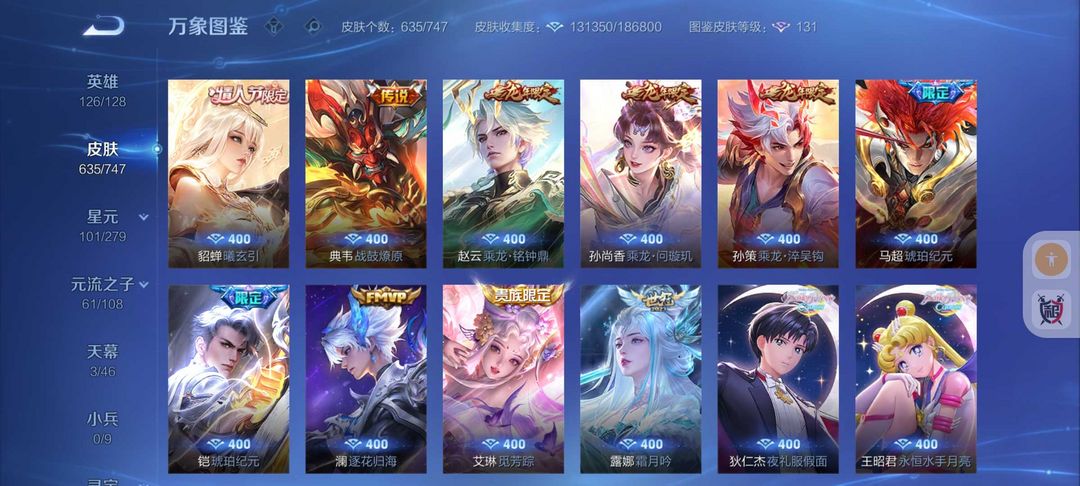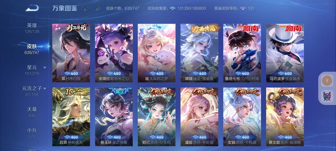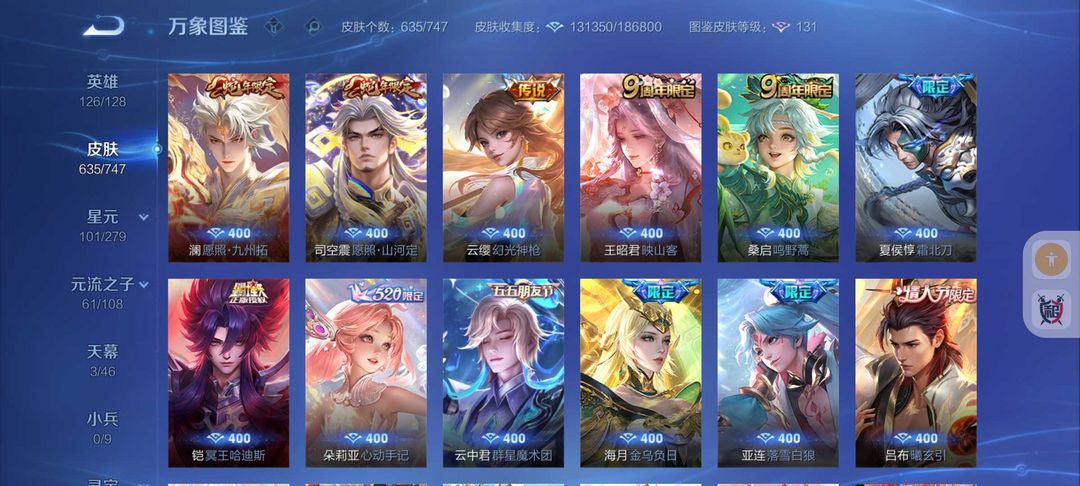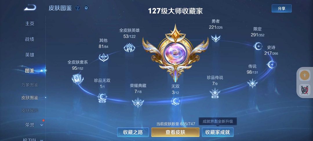装备描述:635皮肤大国马可,小国公孙离戈雅 萌芽梦琪 发育路73段巅峰魔方 貂蝉慕夏 8水晶3无双7珍品98传说