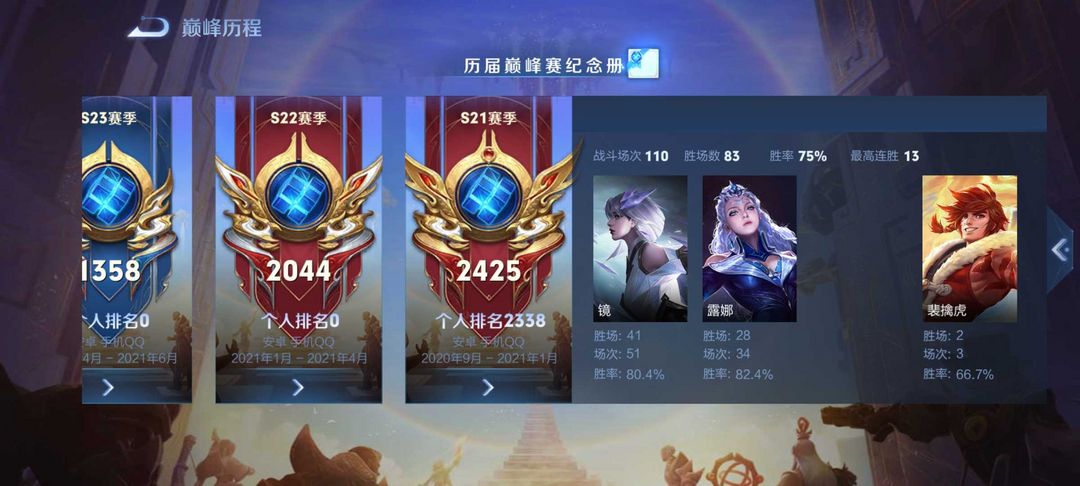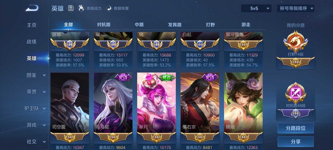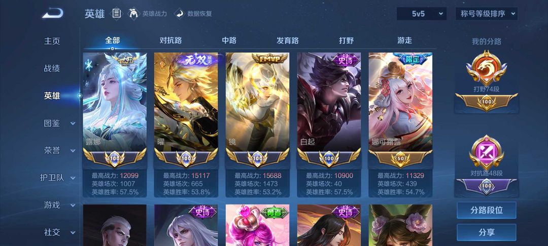 正式服国服镜露娜曜74段打野⭐璃龙剑花合斗鸣剑曳影多热门限定有按键⭐定榜2400小魔方百星