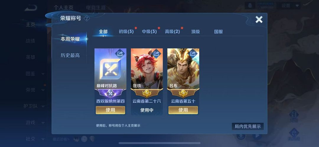 游戏区服:王者荣耀-QQ苹果-QQ账号