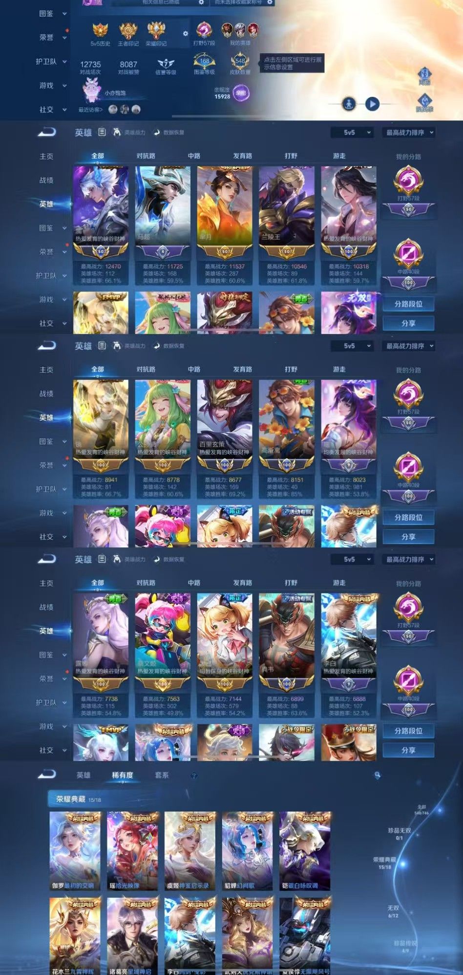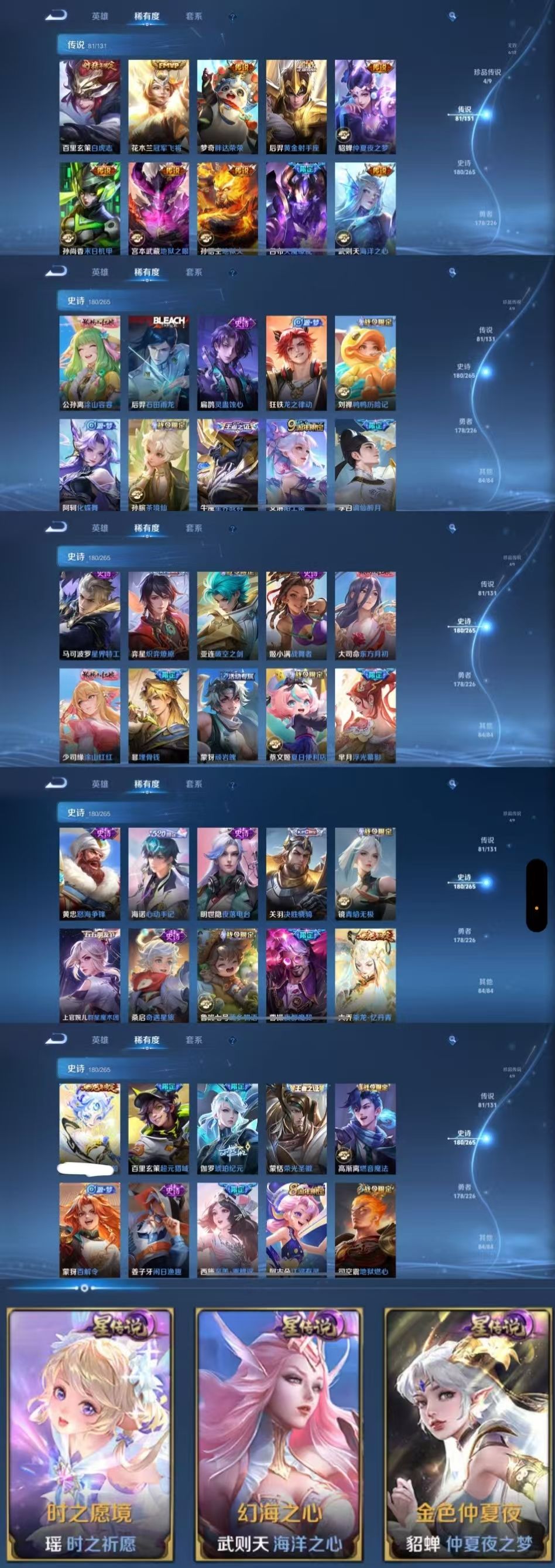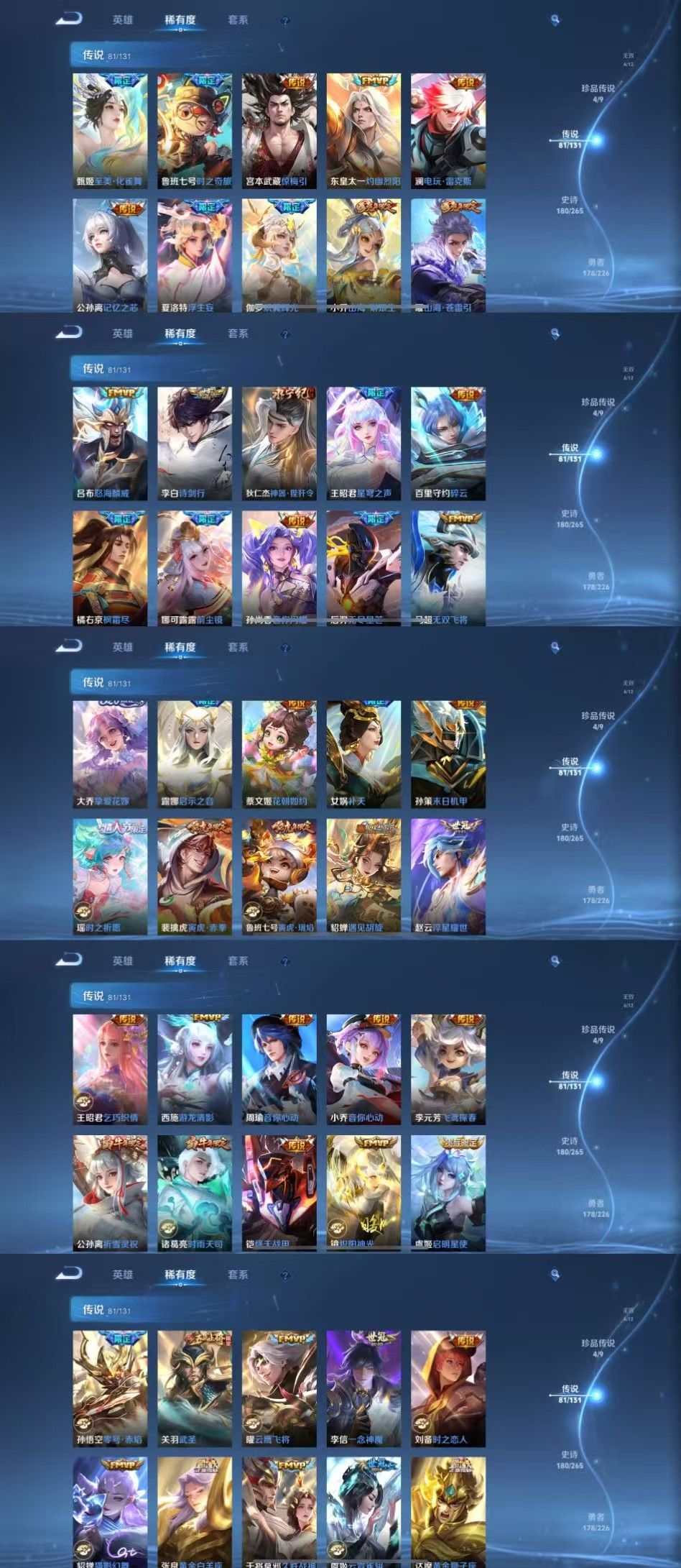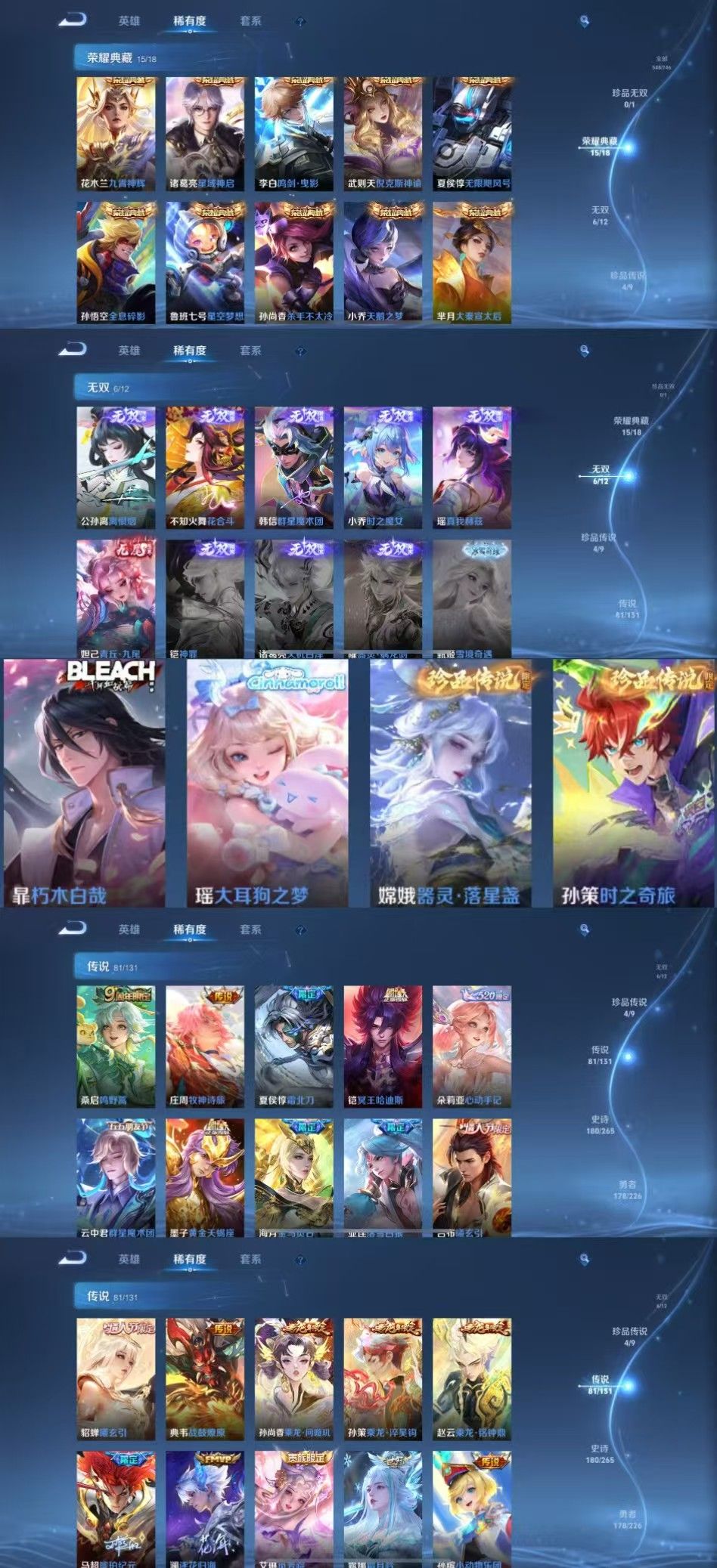 16典藏6无双4珍品81传说✨国服玄策国服澜✨国服暃国服高渐离✨国服典韦万战马超✨万战芈月万战兰陵王