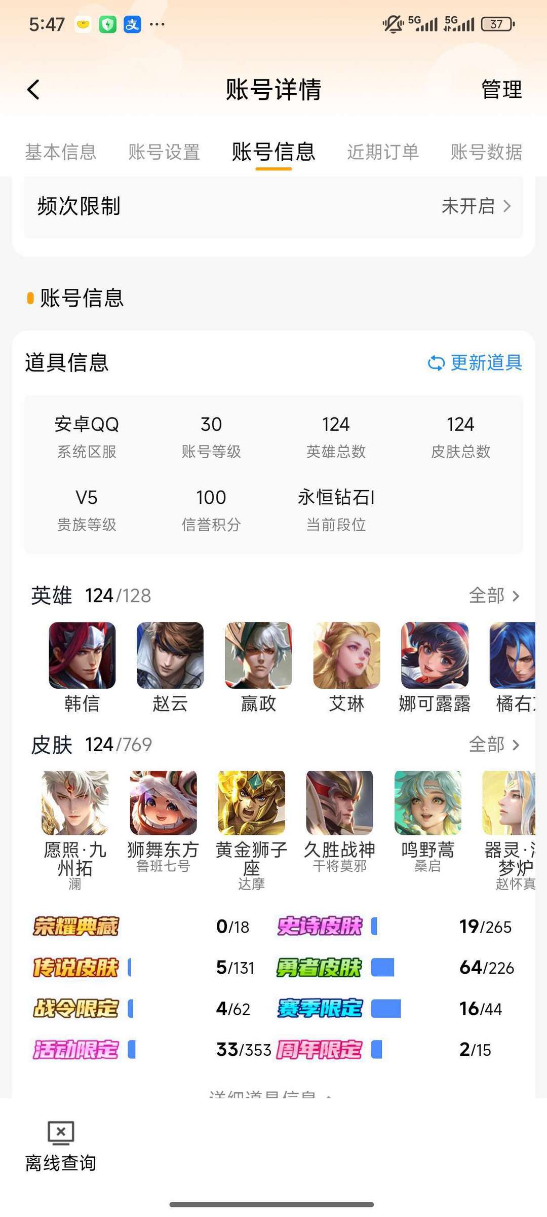 游戏区服:王者荣耀-QQ安卓-QQ账号