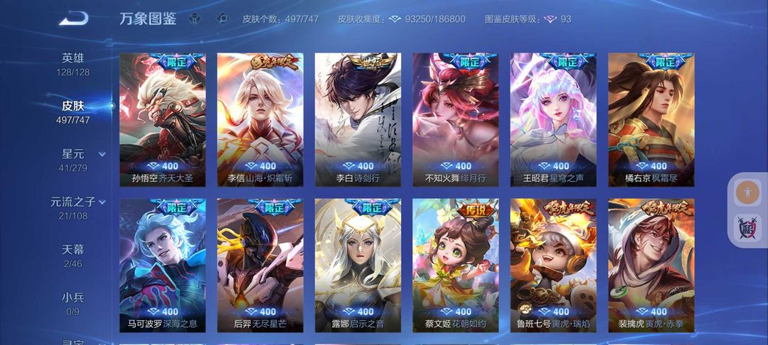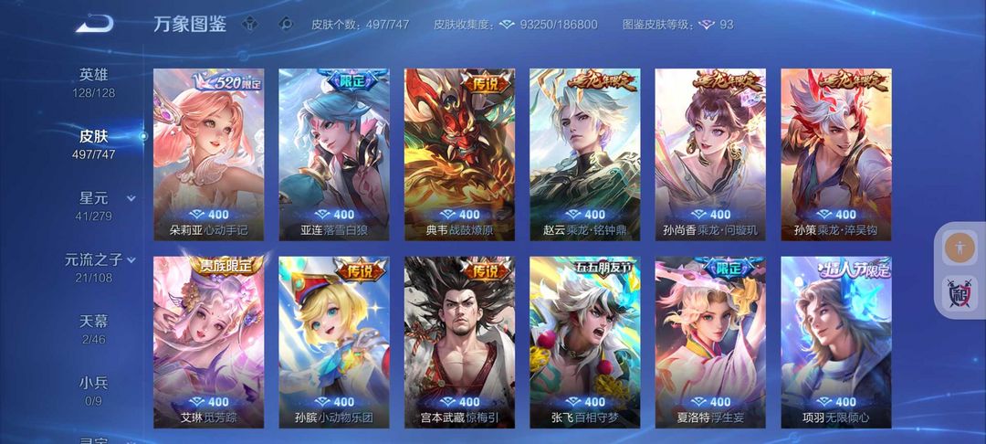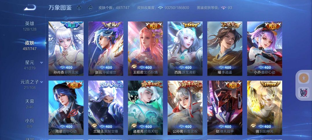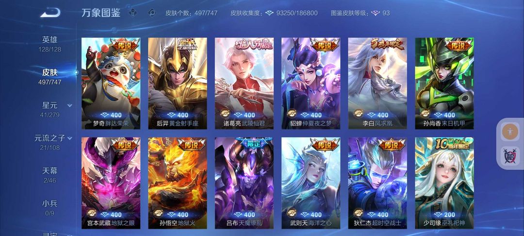 装备描述:497皮肤❤️女号❤️女头像❤️貂蝉慕夏珍品无双❤️4无双❤️凯神罪❤️诸葛天机白泽❤️超新64传说皮❤️