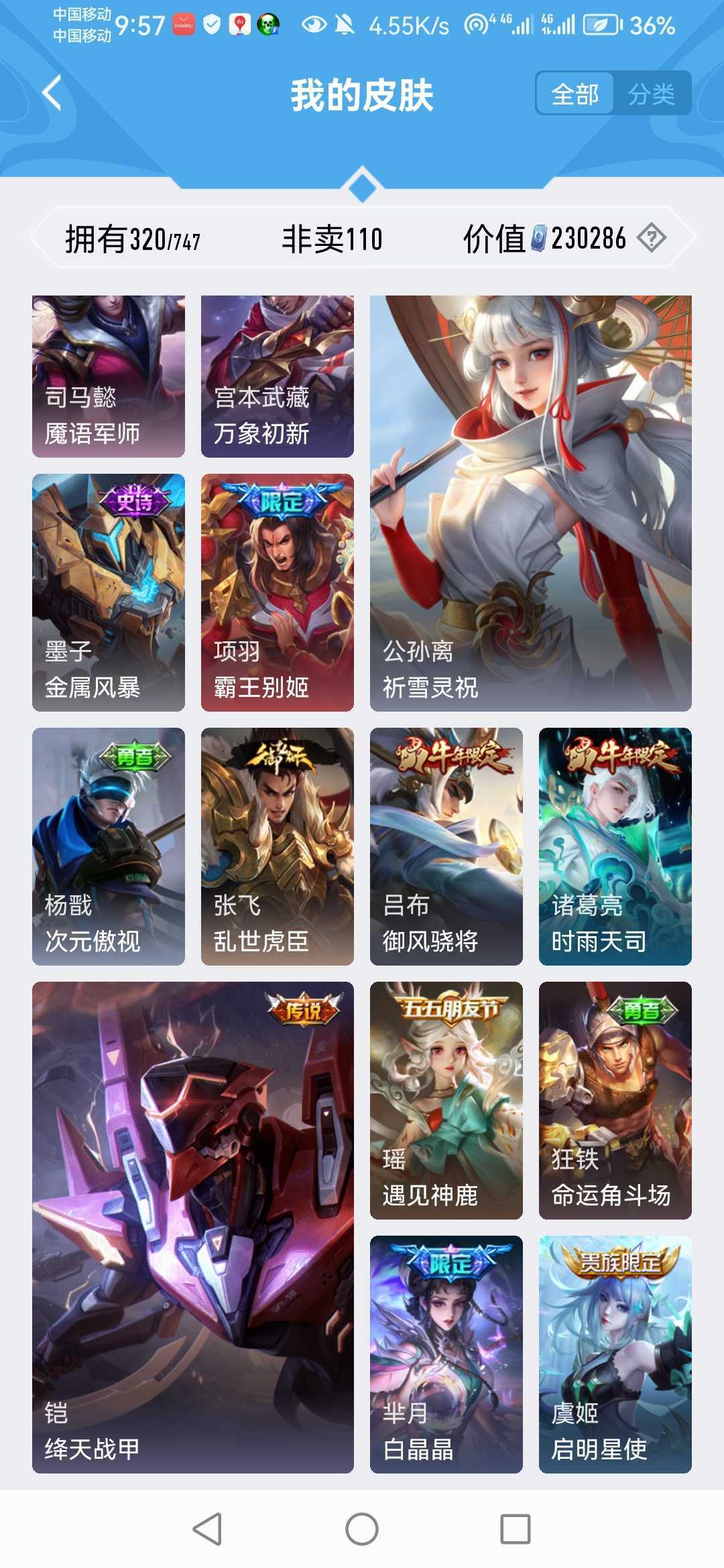 诸葛亮无双♥祈雪灵祝♥万灵启世♥浮梦炉♥九州拓♥山河定♥炽霜斩♥苍雷引♥白晶晶龙胆武圣