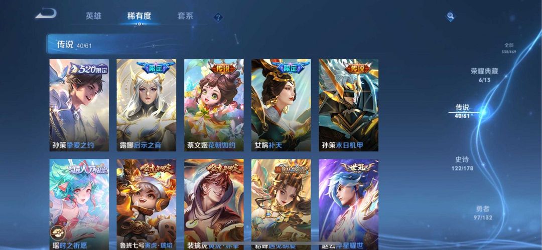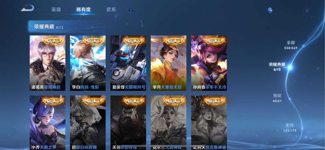V10 463皮 6水晶72传说 3无双皮 真我瑶 8个天幕93按键 太后 天鹅