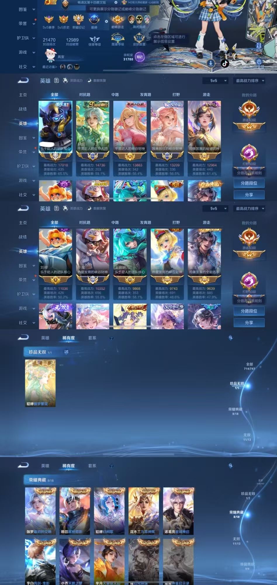 漂亮女号✨11无双9珍品全传说✨83段游走✨大国服太乙国服桑启✨国服朵莉亚国服牛魔✨万战少司缘万战镜