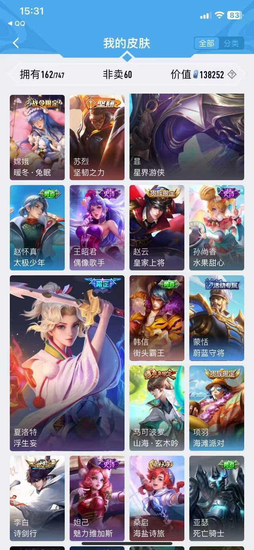 限制: 撤单率<20%才可租用此帐号装备描述:毁号行为涉及毁坏虚拟财产罪及计算机安全罪,请文明游戏素质游戏,让我们共建美好租号平台!禁止利用账号进行开挂、使用辅助违规软件诈骗等违规操作。请游戏局内保持文明,防止禁言影响他人游戏,祝您玩得愉快!喜欢本账号请点 ☆收藏☆ 方便下次租用,谢谢光临惠顾!
