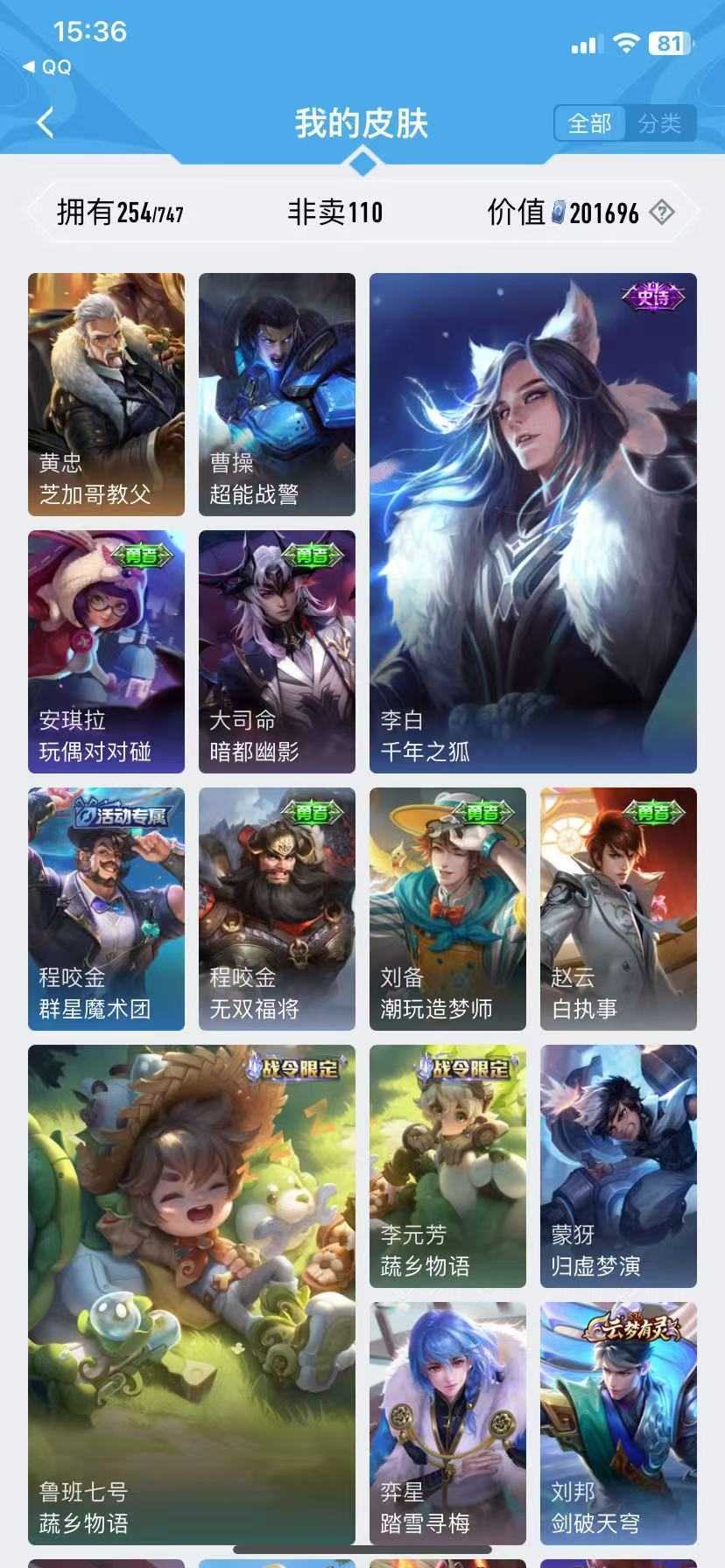 限制: 撤单率<20%才可租用此帐号装备描述:毁号行为涉及毁坏虚拟财产罪及计算机安全罪,请文明游戏素质游戏,让我们共建美好租号平台!禁止利用账号进行开挂、使用辅助违规软件诈骗等违规操作。请游戏局内保持文明,防止禁言影响他人游戏,祝您玩得愉快!喜欢本账号请点 ☆收藏☆ 方便下次租用,谢谢光临惠顾!