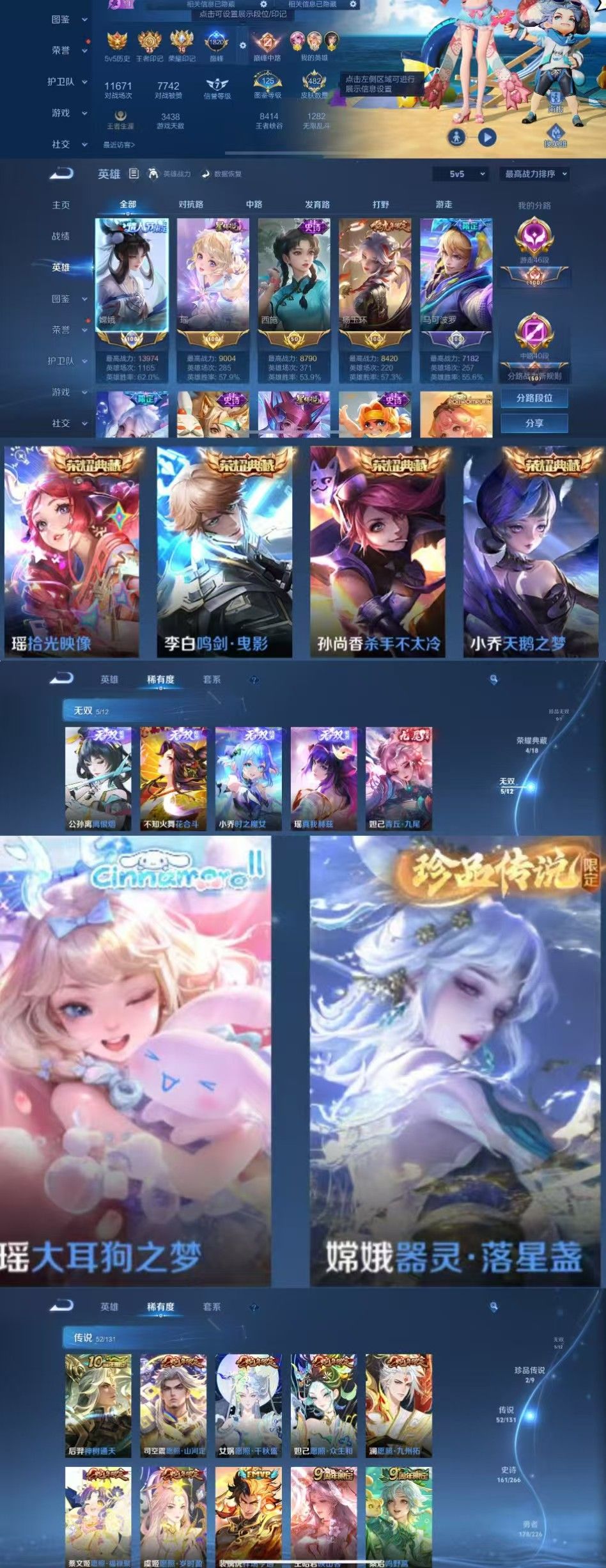 漂亮女号✨5无双2珍品52传说✨国服嫦娥金标瑶✨金标西施金标杨玉环✨大耳狗落星盏✨全蛇年映山客✨紫瑶