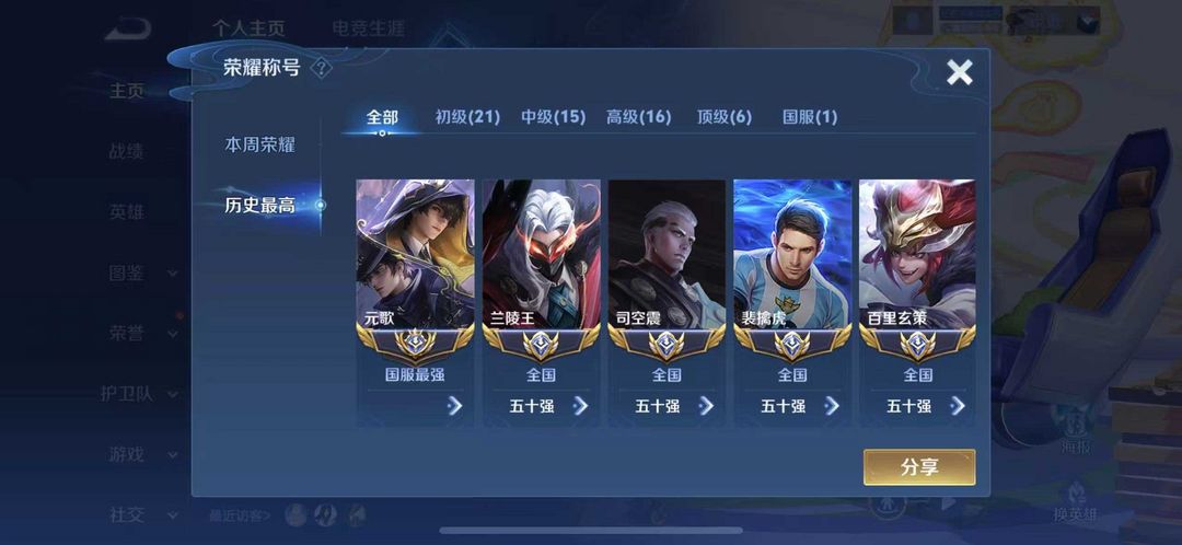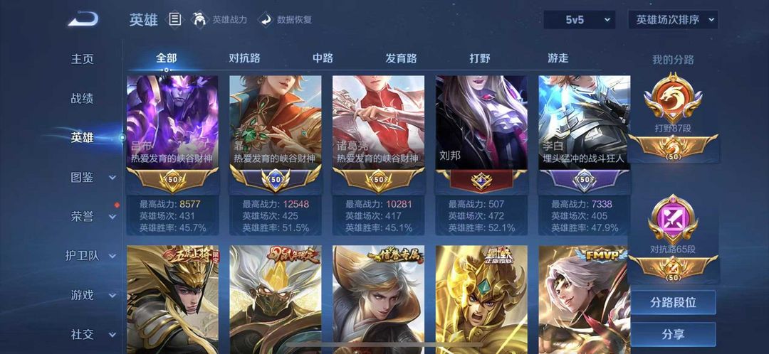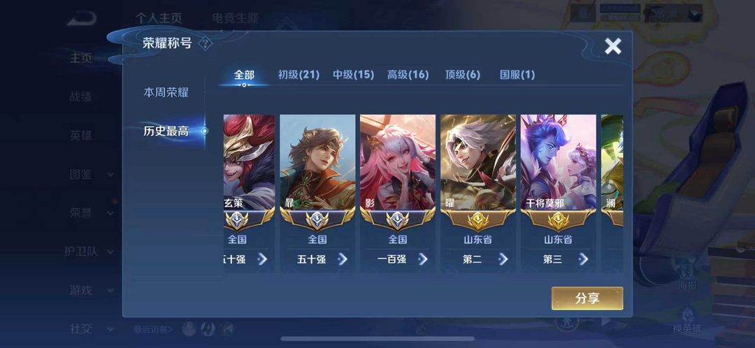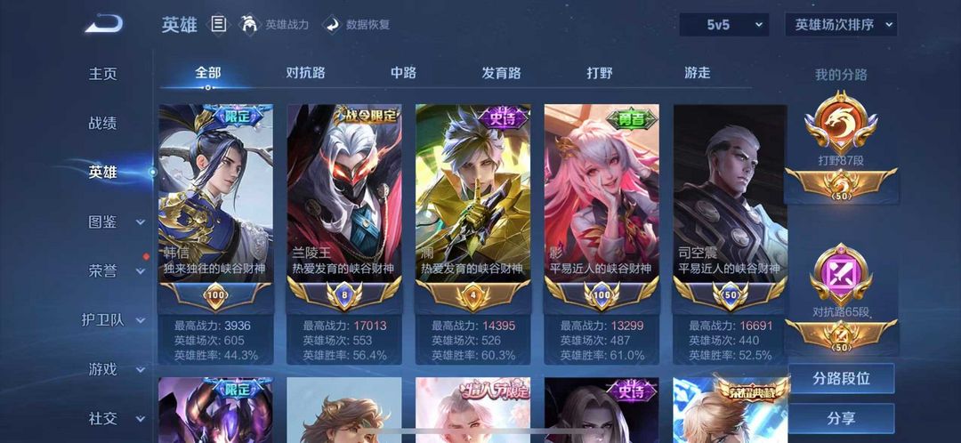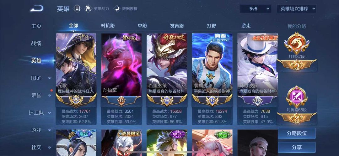 1.7W大国元歌✨1.6w小国司空震老虎✨1.5w小国玄策✨87段打野✨65段对抗✨野王号
