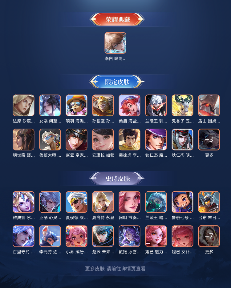 【V7 179皮】省标李白 省标镜 省标澜皮肤数: 175 荣耀水晶: 鸣剑·曳影 传说皮: 炽阳神
