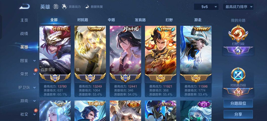 国服镜暃玄策74段打野★朽木白哉天机白泽璃龙剑全皮露娜马超镜多热门传说★37按键传说天幕称号有签