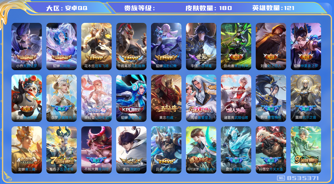 【V6 237皮】包天便宜✨121英雄-180皮肤-2典藏-0无双-0珍品传说-18传说-55史诗
