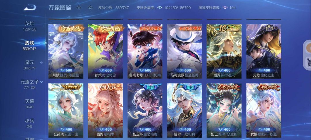 装备描述:538皮肤满珍品❤️貂蝉慕夏❤️6水晶❤️68传说凯水晶❤️诡秘之主FMVP❤️宫本暃珍品