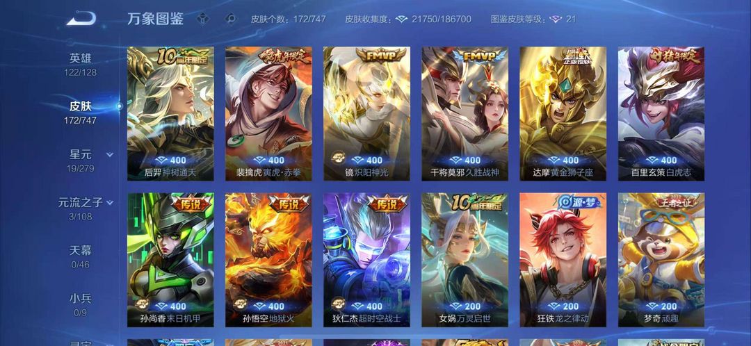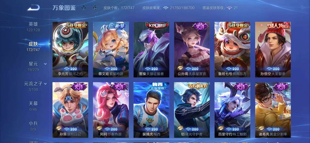 有稀有皮肤 玄策白虎志 裴擒虎 梅西 曹操天狼征服者 大圣娶亲 韩信的逐梦之影