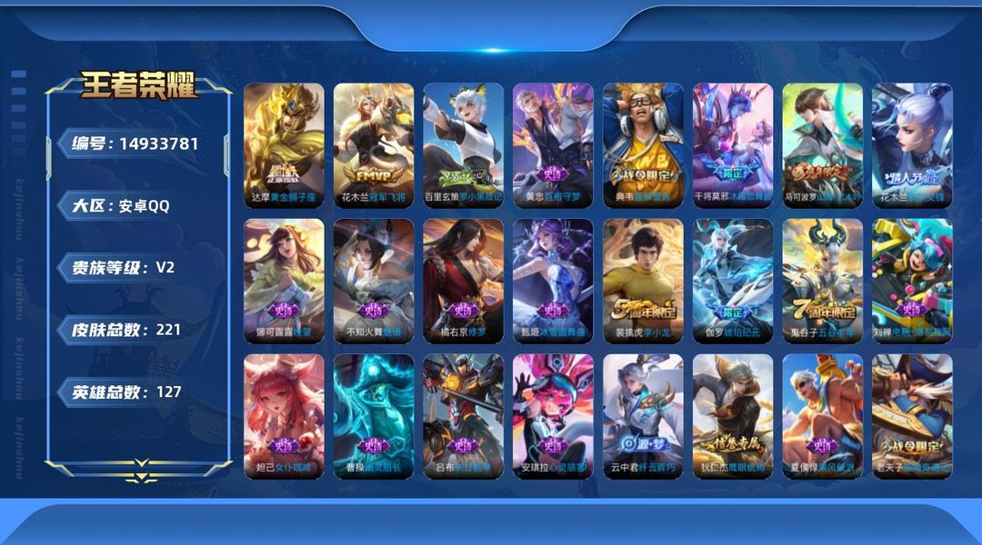 游戏区服:王者荣耀-QQ安卓-QQ账号