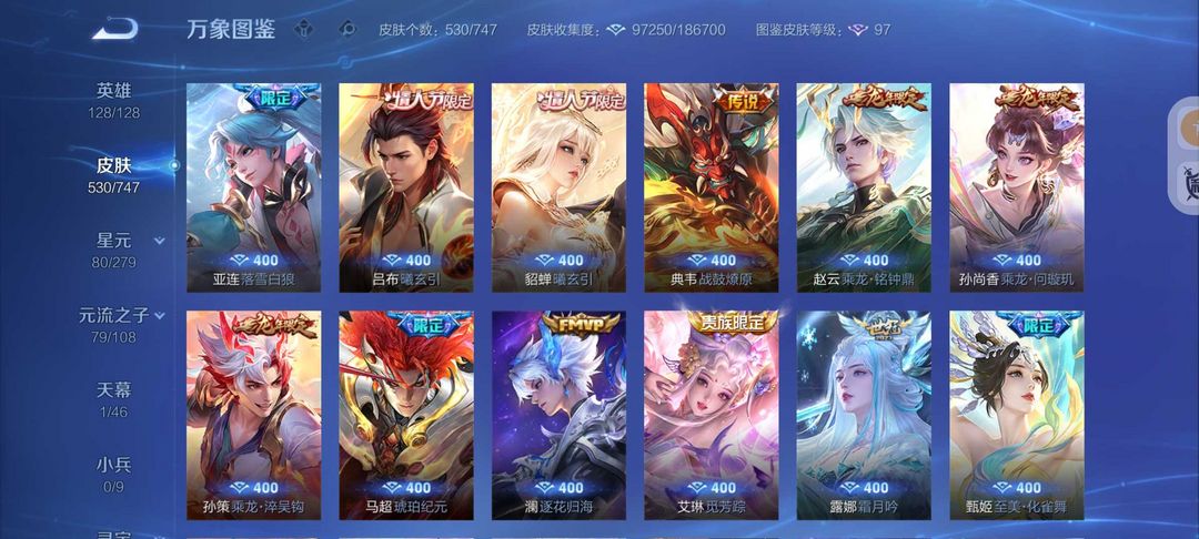 装备描述:极品3国标❤️巅峰万强2000❤️在榜省级赵怀真蒙恬❤️国服蒙恬赵怀真桑启❤️凯神罪❤️5无双4水晶530皮肤❤️7珍品传说❤️