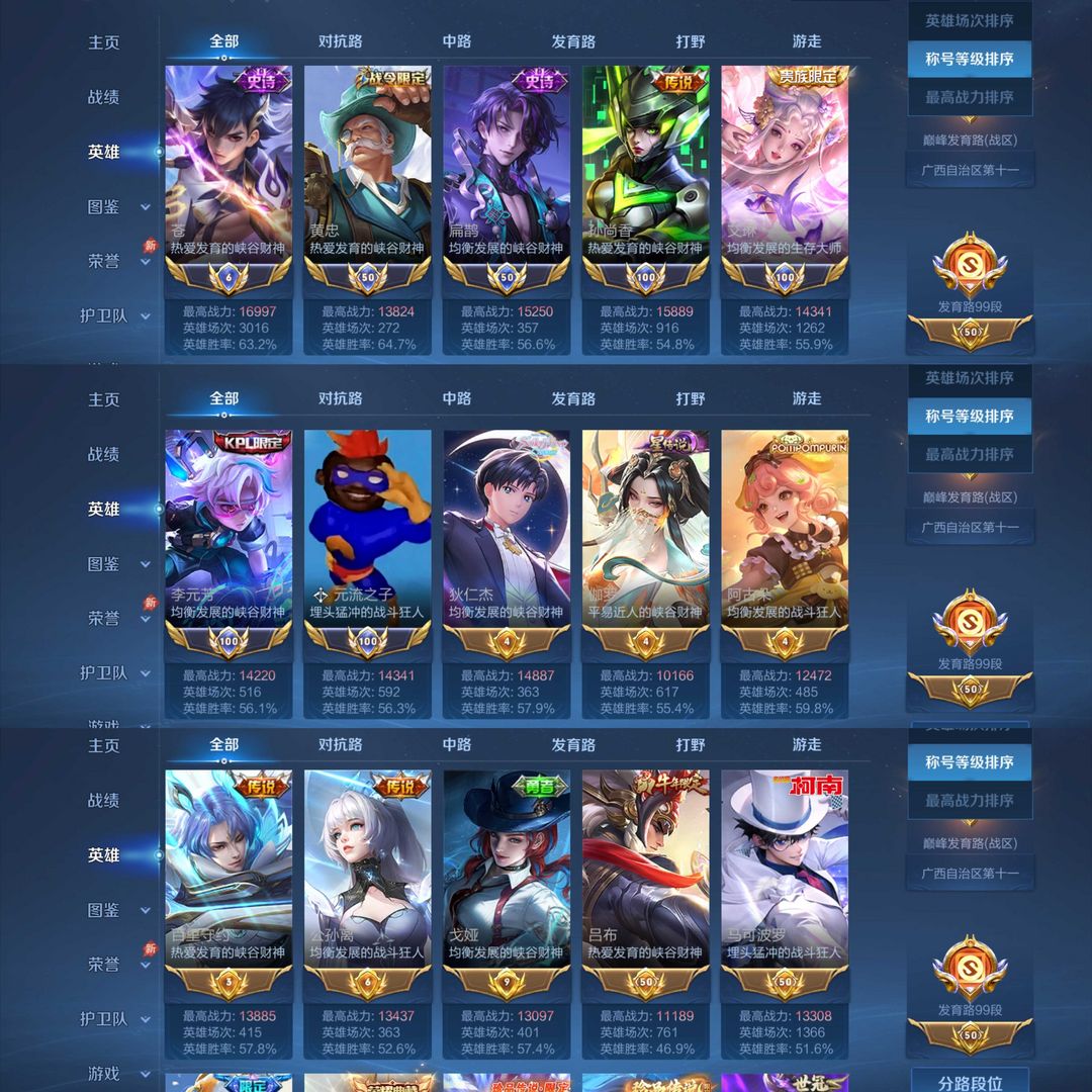 省在榜99段巅峰发育路❤7个小国❤5小兵3天幕❤按键多❤击败特效多