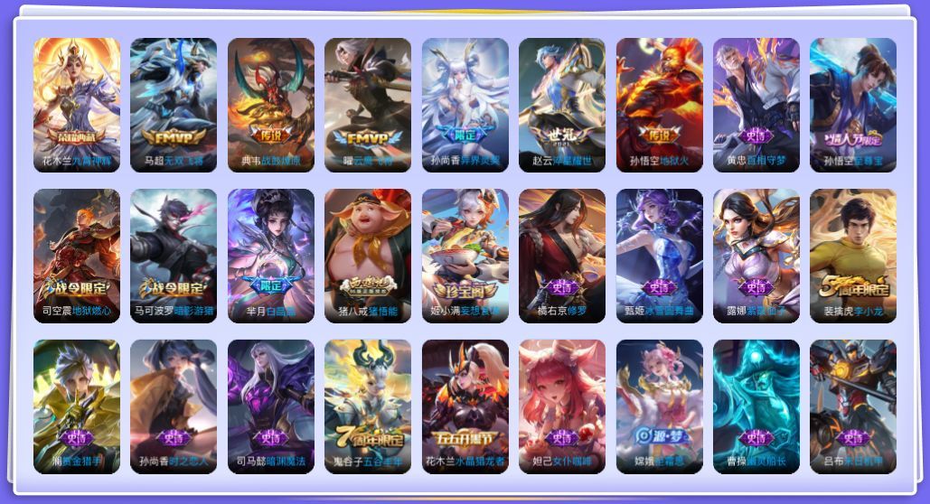 装备描述:至尊宝 九霄神辉 云鹰飞将,地狱火,淬星耀世,无双飞将,典韦战鼓燎原 遇见飞天,李小龙,梁祝,异界灵契,白晶晶,热情桑巴,美猴王,,高山流水,猪悟能,五谷丰年