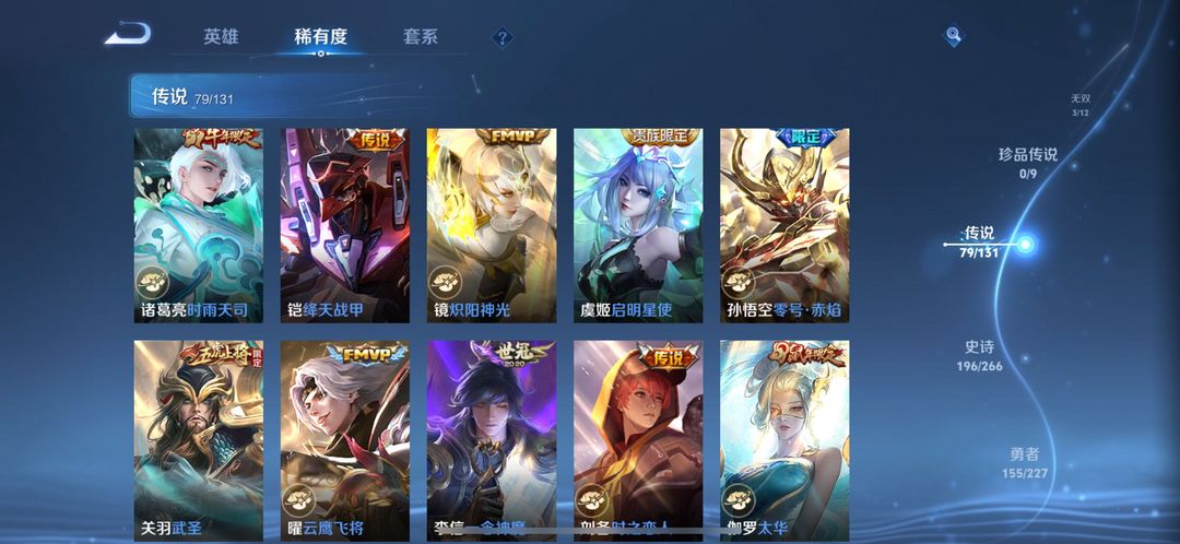 v10⚡大国标司空震⚡3典藏⚡3无双⚡79传说⚡520皮肤⚡包天便宜⚡小国标司马懿