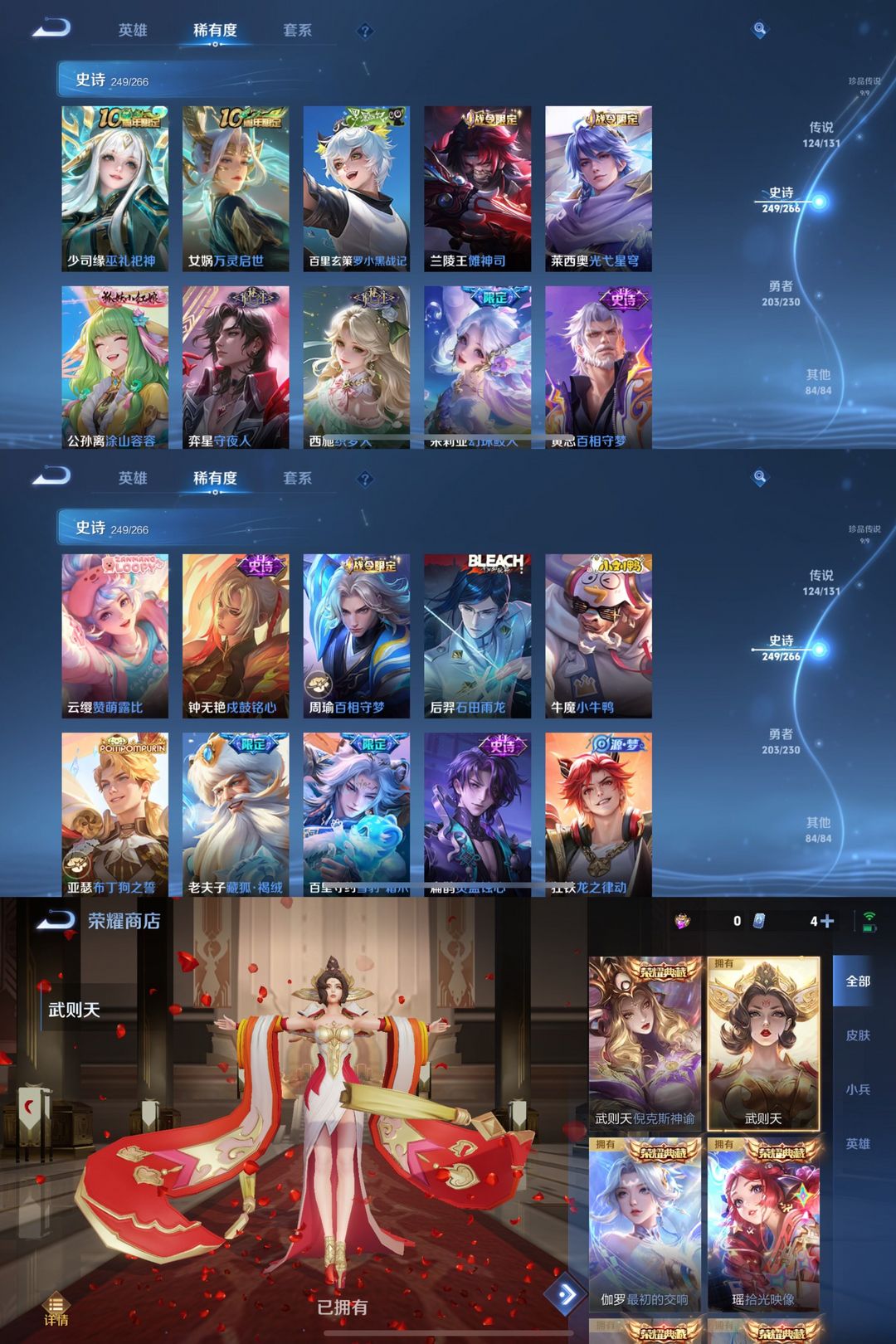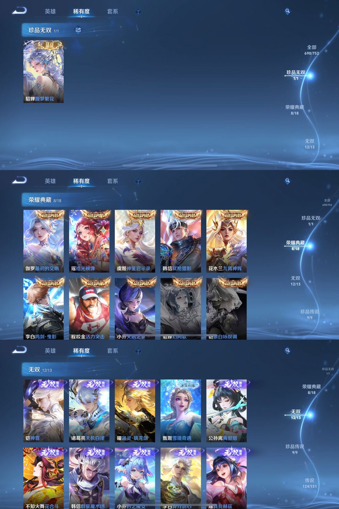 无双V10!690皮肤9水+1小兵12无双9珍品124传说!馥梦繁花!拾光映像神罪天机白泽大耳狗满蛇