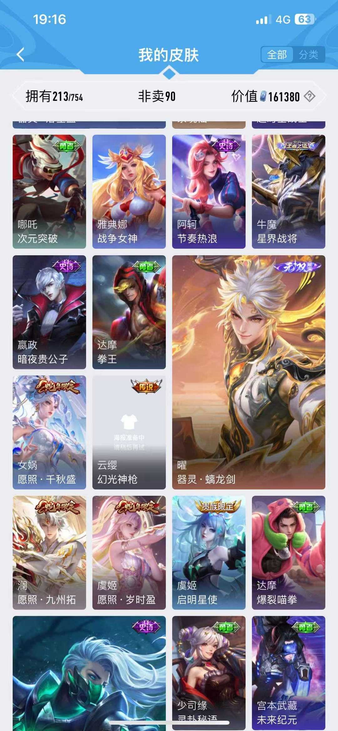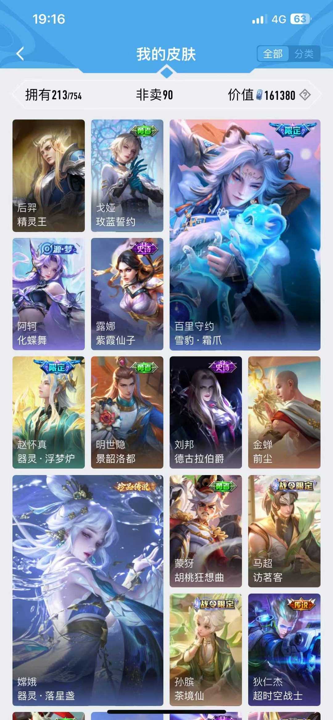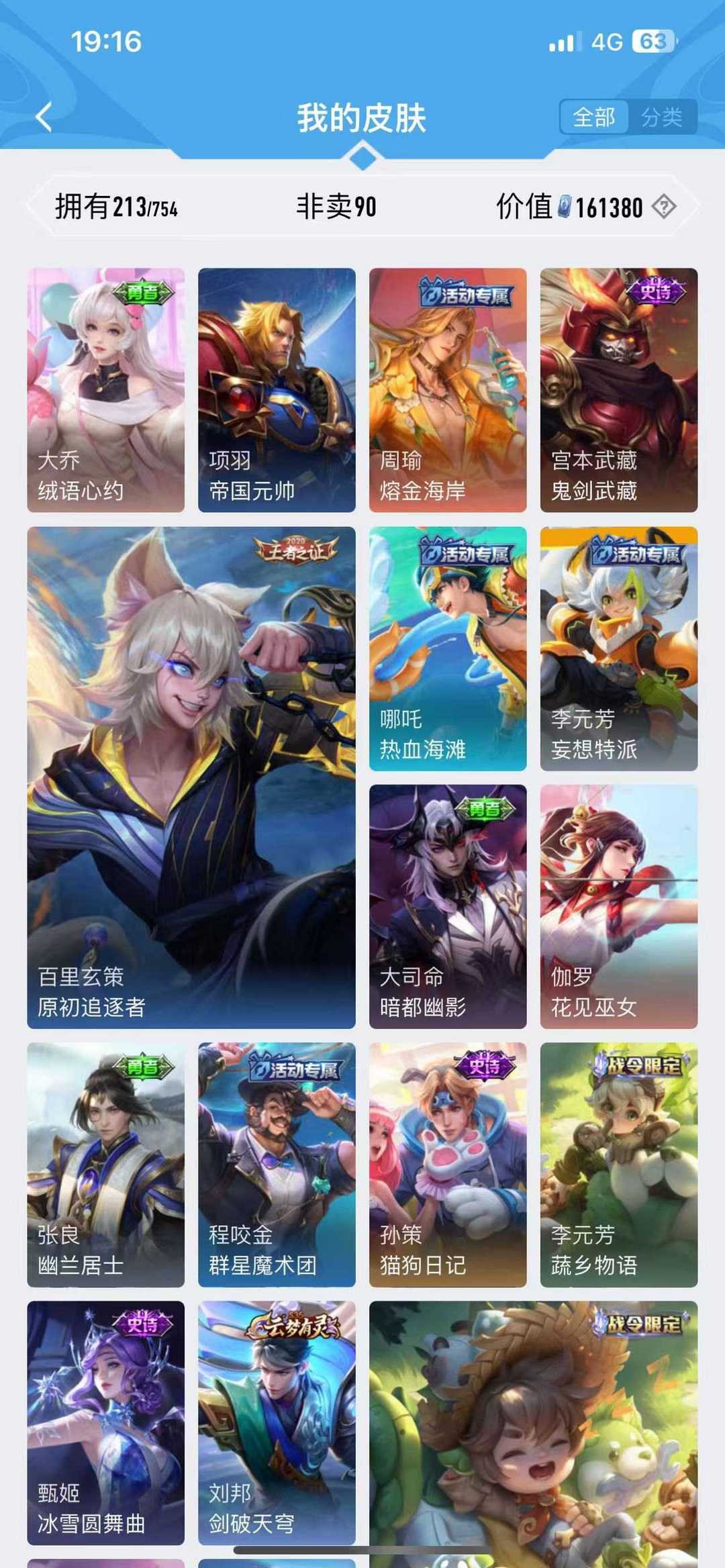 限制: 撤单率<20%才可租用此帐号装备描述:毁号,涉及毁坏虚拟财产罪及计算机安全罪,请文明游戏素质游戏,让我们共建美好租号平台 本游戏账号: V10用户基础段位:至尊星耀I英雄多皮肤多。典藏皮肤4个感受典藏皮肤带来的优质体验快感FMVP皮肤12个尽情享受FMVP皮肤带来的主角光环 私人所属英雄皮肤有:伽罗 最初的交响虞姬 神鉴启示录芈月 大秦宣太后夏侯惇 无限飓风号张飞 兔狲·蓬尾后羿 千劫归真百里守约 碎云嫦娥 器灵·落星盏云缨 幻光神枪孙策 时之奇旅妲己 愿照·众生和蔡文姬 愿照·福禄聚女娲 愿照·千秋盛司空震 愿照·山河定虞姬 愿照·岁时盈澜 愿照·九州拓嬴政 玄雷天君狄仁杰 超时空战士鲁班七号 江户川柯南马可波罗 怪盗基德桑启 鸣野蒿王昭君 映山客干将莫邪 画中仙庄周 牧神诗旅诸葛亮 时雨天司铠 冥王哈迪斯孙尚香 音你闪耀云中君 群星魔术团小乔 音你心动墨子 黄金天蝎座亚连 落雪白狼吕布 曦玄引貂蝉 曦玄引典韦 战鼓燎原赵云 乘龙·铭钟鼎孙策 乘龙·