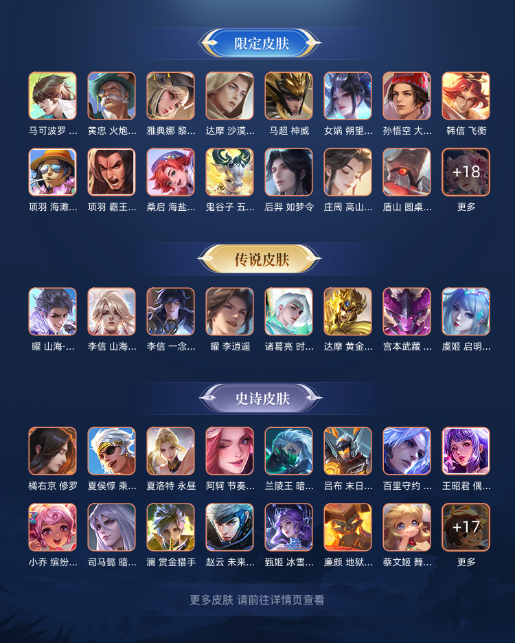 黄金狮子座,云鹰飞将,炽阳神光,一念神魔,地狱之眼,李逍遥,时之恋人-刘备,无双飞将,山海·炽霜斩,