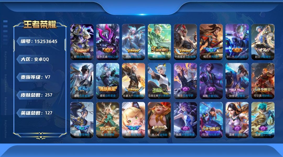 游戏区服:王者荣耀-QQ安卓-QQ账号