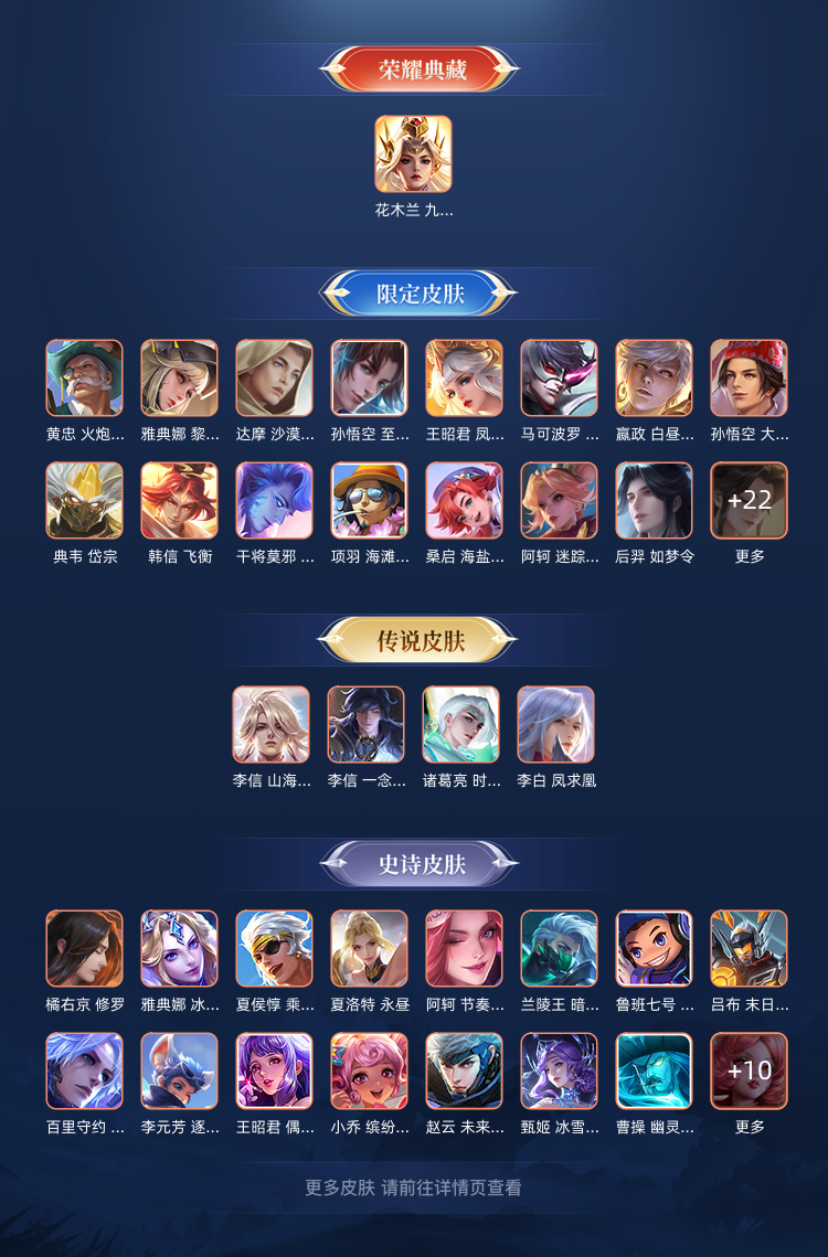 装备描述:至尊宝 九霄神辉 云鹰飞将,一念神魔,时之恋人-刘备,无双飞将,山海·炽霜斩 李小龙,游园惊梦,时雨天司,岱宗,天狼溯光者,飞衡,冰霜恋舞曲,逐梦之影,凤求凰,凤凰于飞,,如梦令-后羿,大圣娶亲,高山流水,猪悟能