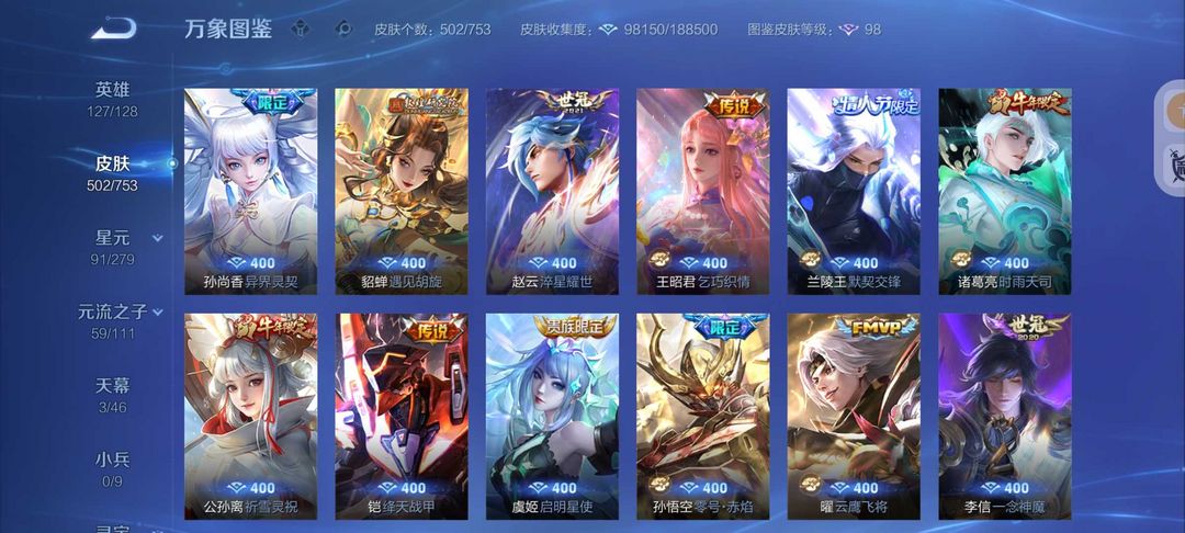 502皮肤女号❤金标瑶妹少司缘❤游走47段❤貂蝉慕夏❤8典藏7珍品大耳狗库洛米❤蛇年限定皮