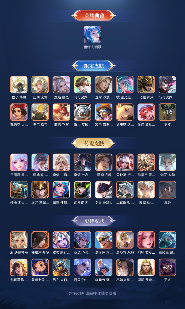 貂蝉幻阙歌,曜全皮,李信全皮,289皮肤。铂金可排位