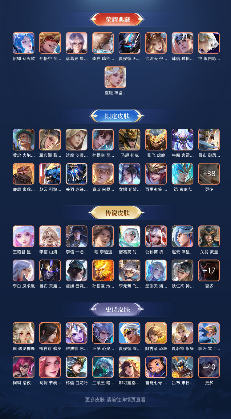 装备描述:不禁言⭐️V10⭐️11荣耀水晶1小兵 4无双 2珍品 161限定⭐️4省标 韩信火舞妲己李白无双