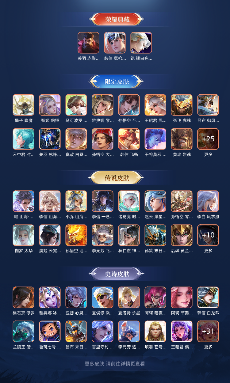 装备描述:V10 419皮3典藏3珍品蛇年落星盏江户川柯南怪盗基德弑枪猎影赤影疾锋银白咏叹调山河定 皮肤数量: