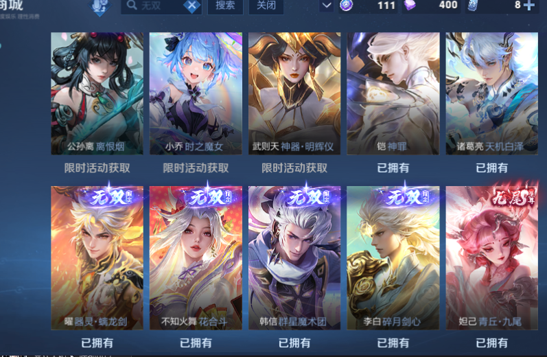 670皮 10无双6典藏 天机白泽 神罪 雪境奇遇 螭龙剑 拾光映像