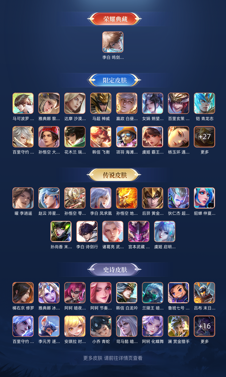 李白典藏皮肤限定皮肤都有,段位星耀