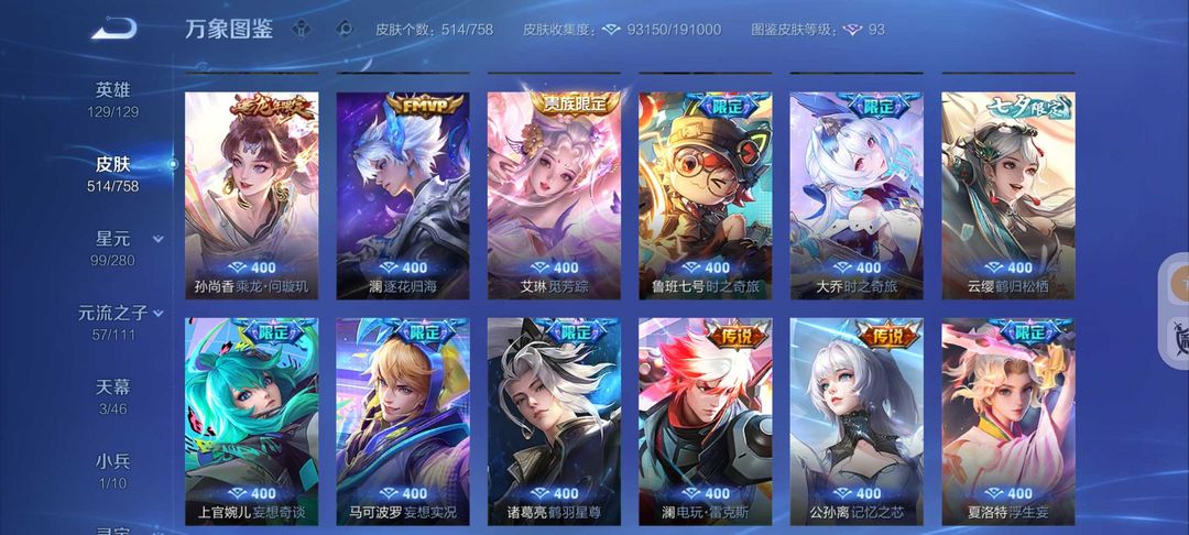 装备描述:514皮肤❤狐妖小兵❤7典藏凯典藏❤2无双离烟恨花合斗❤怪盗基德61传说云诺千山❤