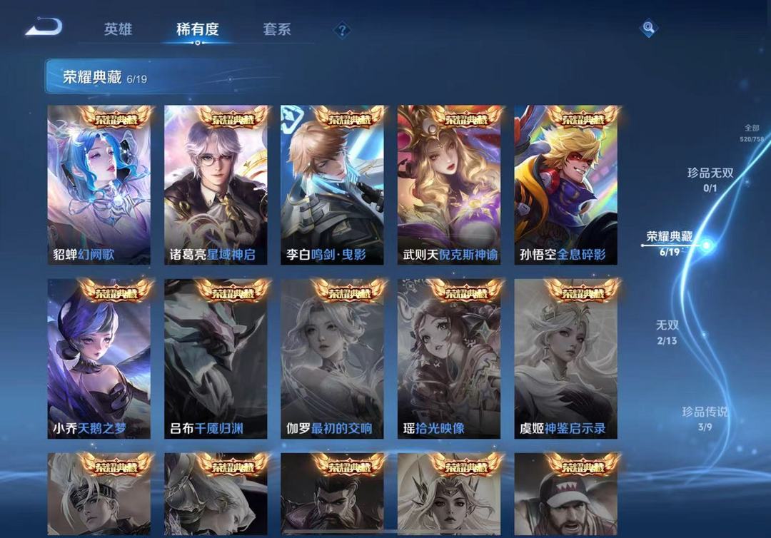 V10丨520皮肤丨7典藏水晶丨2无双3珍品传说丨瑶安其拉珍品丨包天特惠