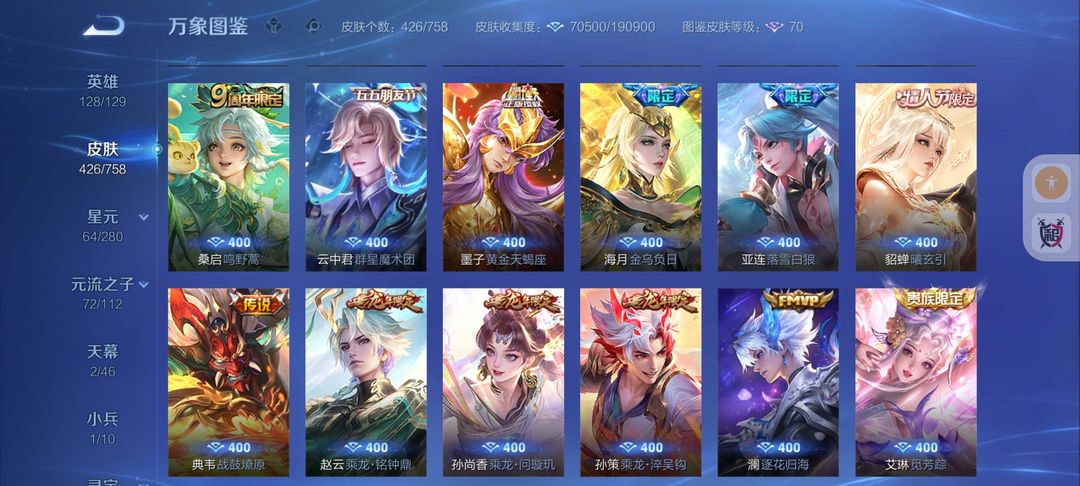 425皮肤❤4典藏3无双皮❤大耳狗小兵❤鸣剑全息❤曜无双大耳狗35传说皮蛇年限定❤