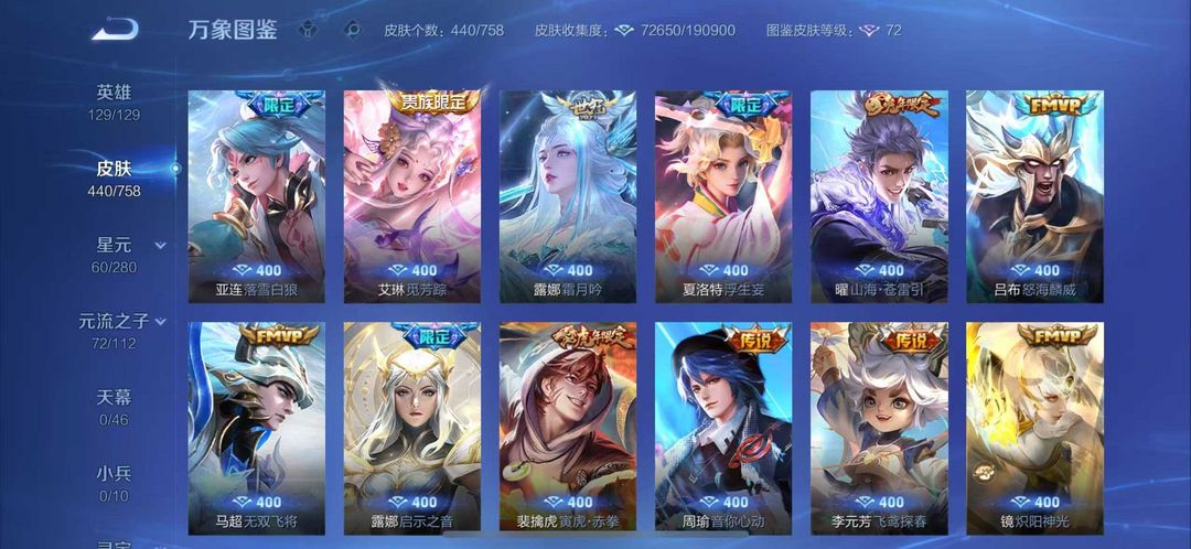440皮肤❤6水晶1无双❤蛇年限定皮离烟恨❤怪盗基德33传说