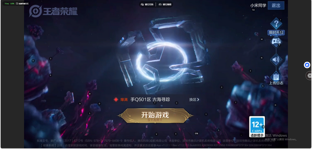 游戏区服:王者荣耀-QQ安卓-QQ账号