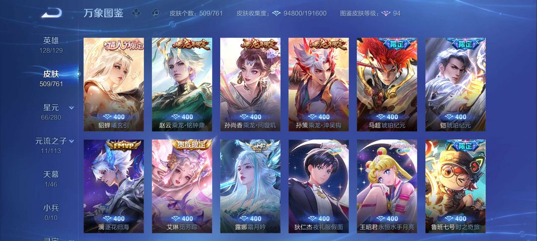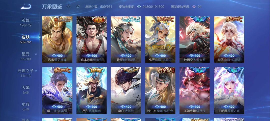 限制: 撤单率<90%才可租用此帐号装备描述:毁号,涉及毁坏虚拟财产罪及计算机安全罪,请文明游戏素质游戏,让我们共建美好租号平台 本游戏账号: 英雄多皮肤多。典藏皮肤3个感受典藏皮肤带来的优质体验快感FMVP皮肤7个尽情享受FMVP皮肤带来的主角光环 私人所属英雄皮肤有:孙尚香 杀手不太冷花木兰 九霄神辉铠 银白咏叹调百里守约 碎云孙尚香 音你闪耀孙尚香 末日机甲孙尚香 异界灵契关羽 武圣李信 山海·炽霜斩李信 一念神魔李白 诗剑行诸葛亮 武陵仙君诸葛亮 鹤羽星尊孙悟空 齐天大圣孙悟空 零号·赤焰上官婉儿 神器·万象笔上官婉儿 妄想奇谈李元芳 飞鸢探春大乔 挚爱花嫁狄仁杰 超时空战士狄仁杰 神器·狴犴令狄仁杰 夜礼服假面王昭君 星穹之声王昭君 乞巧织情后羿 无尽星芒后羿 黄金射手座虞姬 云霓雀翎虞姬 无限倾心虞姬 启明星使娜可露露 前尘镜貂蝉 仲夏夜之梦瑶 时之祈愿不知火舞 绯月行澜 电玩·雷克斯孙策 挚爱之约蔡文姬 花朝如约鲁班七号 寅虎·瑞焰女娲 补